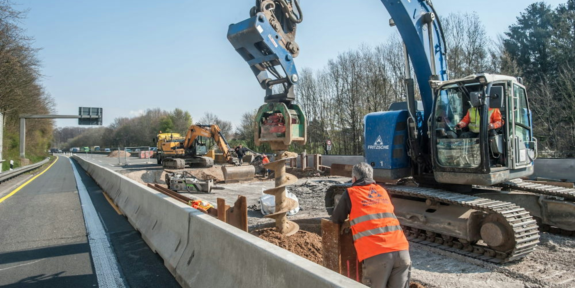 Mit dem Bagger wurde gestern die Fahrbahn aufgerissen. Armiereisen und Betonbrocken liegen auf der Baustelle, an der sich auf beiden Seiten der Verkehr mit Tempo 60 vorbeischlängelt. Mit zwei Schildern weist Straßen NRW darauf hin, dass sich die Verkehrsteilnehmer, welche die Ausfahrt Burscheid nehmen wollen, auf der Spur ganz rechts halten müssen.