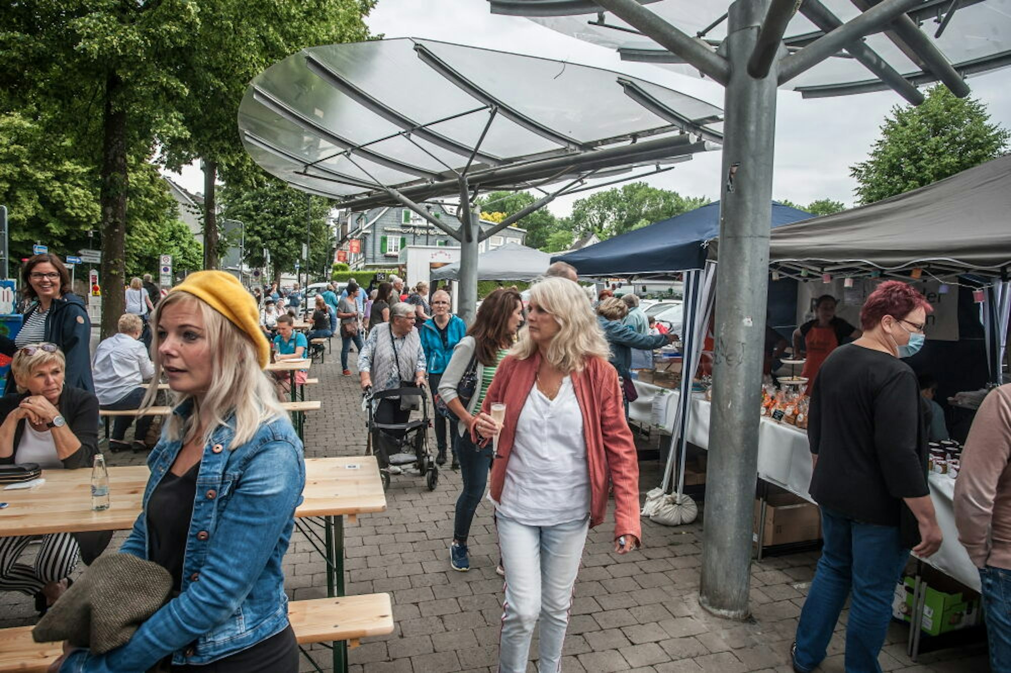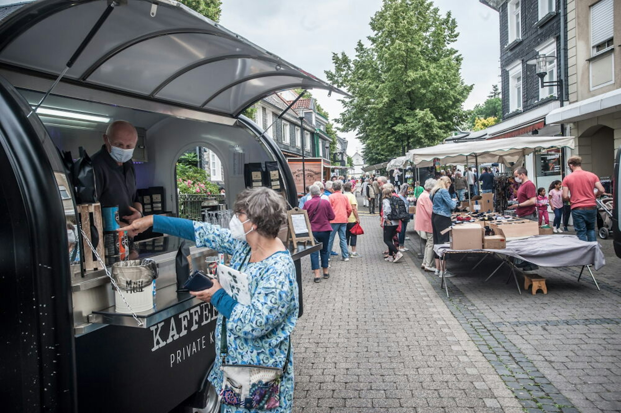 Da wurde es an einigen Stellen auf der Hauptstraße zwischen Marktplatz und Kirchenkurve schon etwas ungewohnt eng. Zwar gilt in Nordrhein-Westfalen – darauf hatte die Stadt Burscheid zunächst auch ausdrücklich hingewiesen – nach der aktuellen Corona-Schutzverordnung noch immer eine Maskenpflicht im Freien „in Warteschlangen und Anstellbereichen sowie unmittelbar an Verkaufsständen“, doch scherte das in Burscheid die Wenigsten.