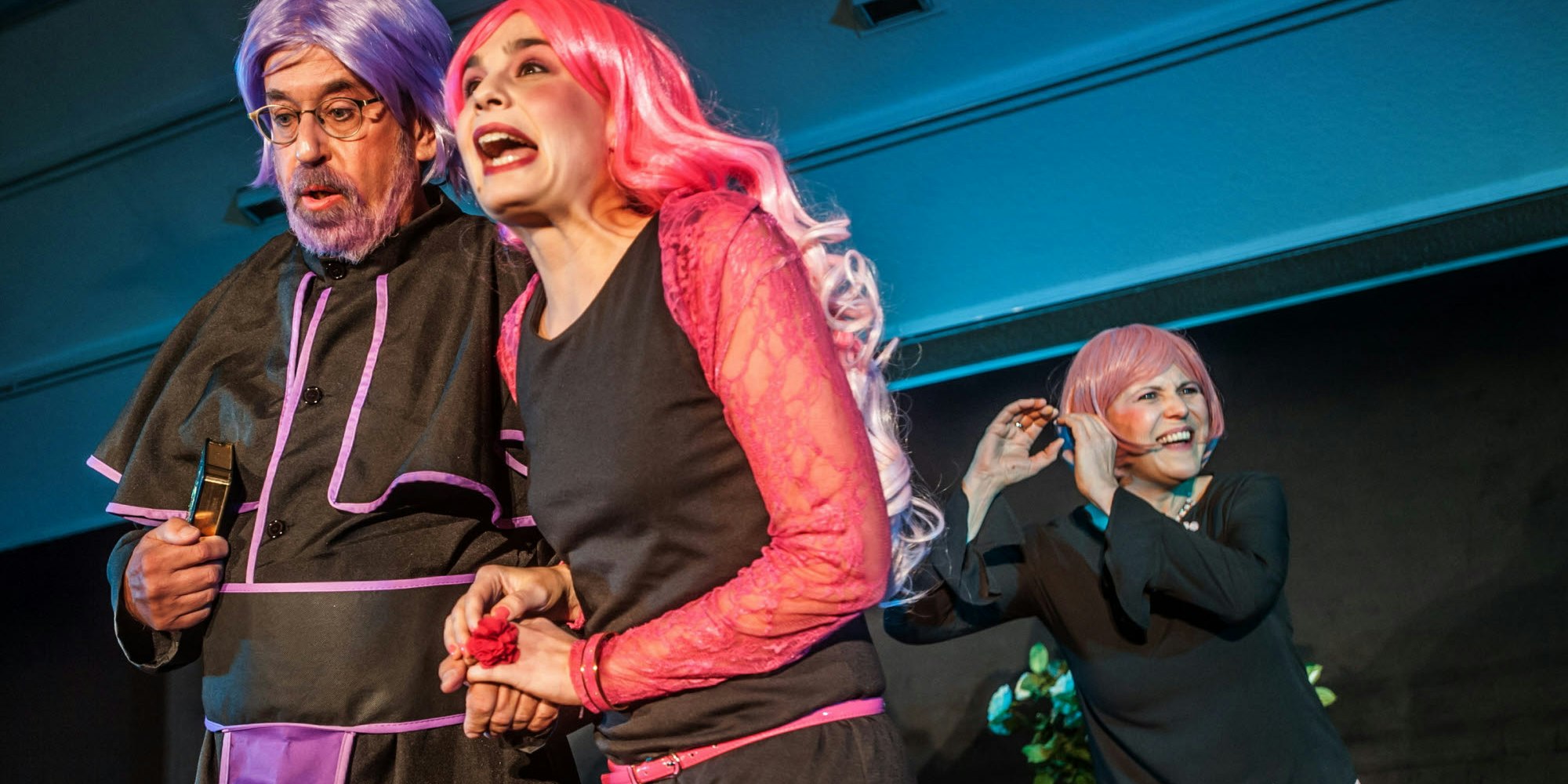 Mit Spaß und Engagement waren die neun Schauspieler in Burscheid dabei. Dank unterschiedlicher Farben konnten die Zuschauer den Rollenwechseln, die es im Stück gab, gut folgen.