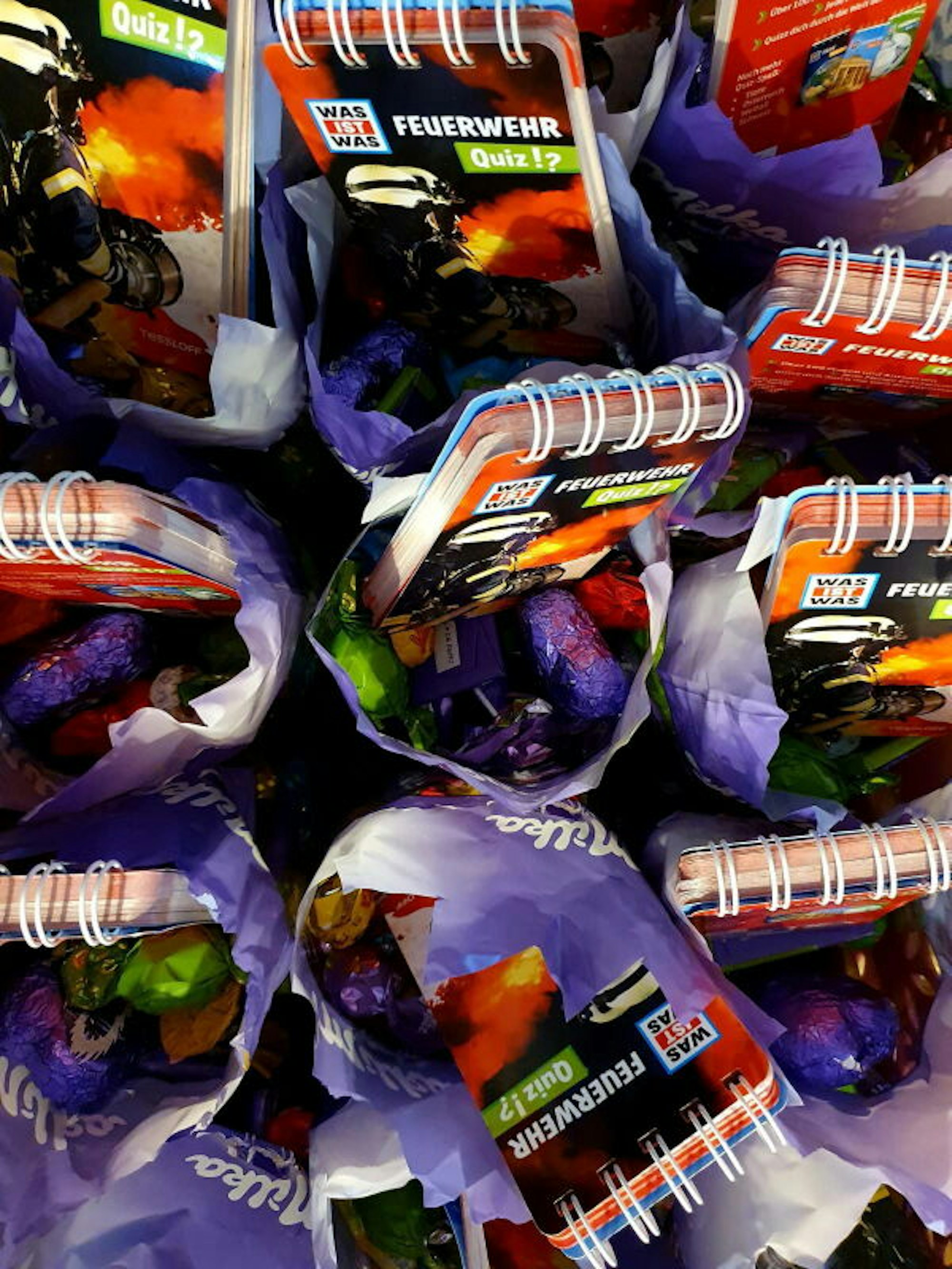 Burscheid – Die Jugendwarte der Burscheider Feuerwehr waren am Samstag als Osterhasen unterwegs: Sie besuchten die 14 Mitglieder der Jugendfeuerwehr und brachten ein kleines Osterpräsent. Neben Schokolade gab es einen Quizblock von „Was ist was“, passend zum Thema „Feuerwehr“. „Leider ist aufgrund der Pandemie ein gemeinsames Treffen nicht möglich. Wir wollen unseren Mitgliedern mit der Aktion zeigen, dass wir sie nicht vergessen haben und es uns immer noch gibt“ erklärt Jugendwartin Yvonne Kolbe die Geschenkaktion.