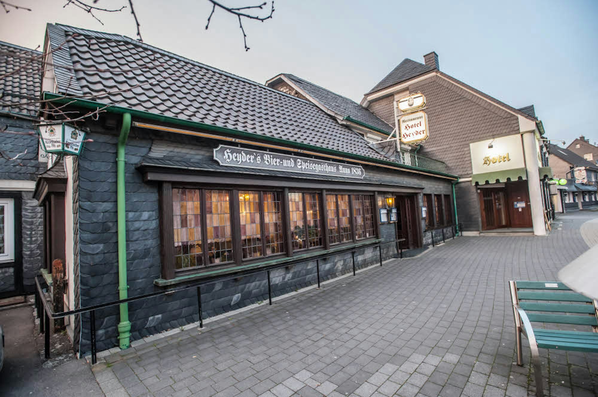 Noch tickt die alte Standuhr, und die Inhaber Elfie und Erhard Meyer zapfen Bier, bereiten die Tische für eine große Gesellschaft vor und schütteln die 43 Betten der 26 Zimmer des traditionsreichen Hauses auf. Es wurde 1836 gegründet, ist seitdem in Familienbesitz und die älteste Gaststätte in Hilgen. Die Heyders hießen erst Heider, woher das y stammt konnte Mettlach nicht ausfindig machen. Heiders handelten mit Spirituosen, betrieben Landwirtschaft und hatten ein Fuhrunternehmen.