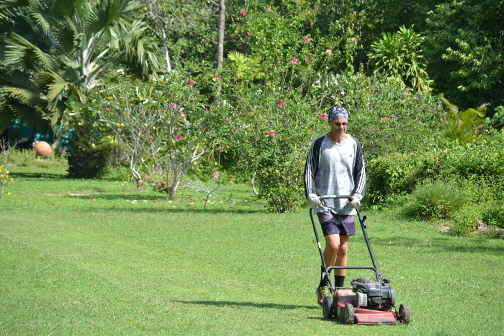 Rasenmähen war nur ein Teil der Aufgaben. Auch der Pool musste gereinigt und das Haus vor Wind und Wetter geschützt werden.