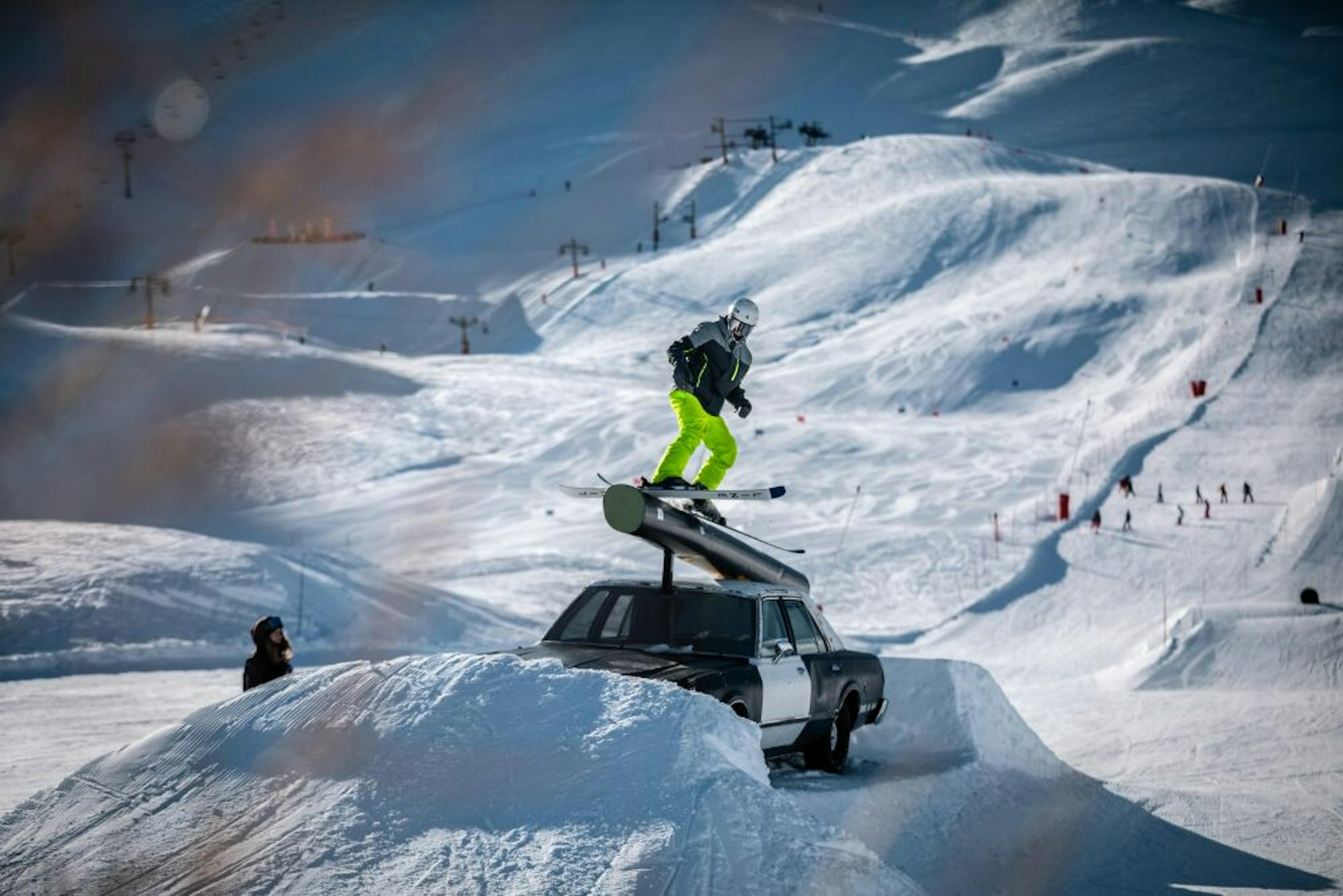 Beim Slopestyle gilt es, Tricks an Hindernissen zu vollführen – das kann auch mal auf einem Auto sein.