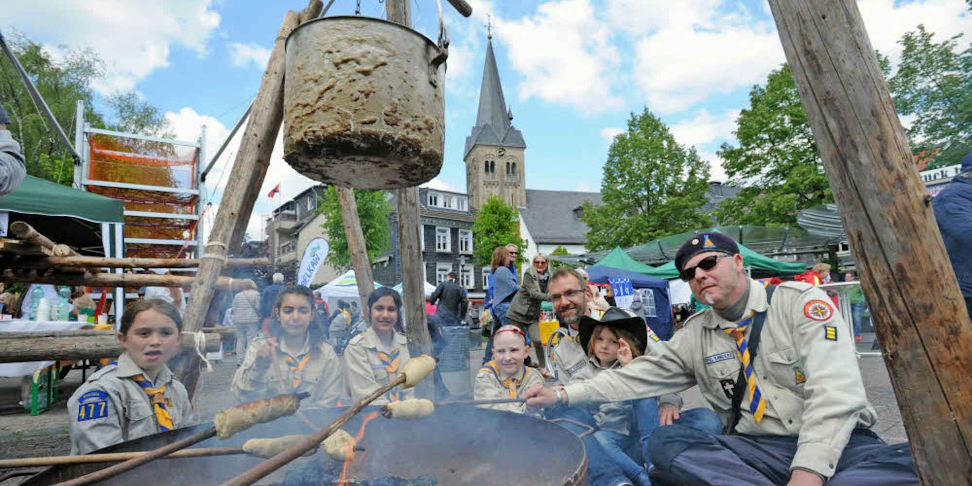 Die Royal Rangers der freien evangelischen Gemeinde Hilgen verbreiteten mit ihrem Lagerfeuer Gemütlichkeit auf dem Marktplatz.