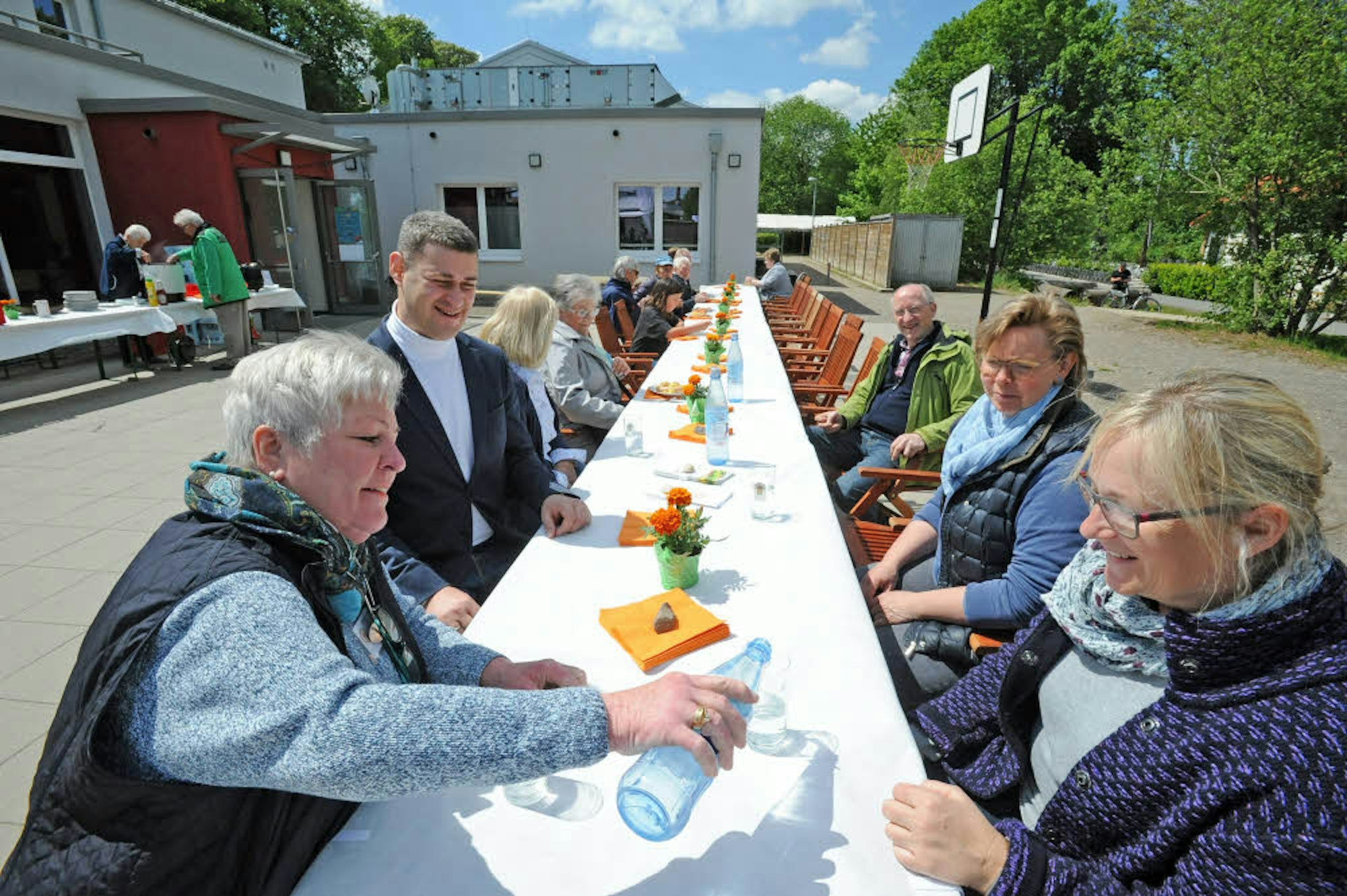 Auch die Burscheider Tafel verzichtete auf Plastik. Die ehrenamtlichen Mitglieder hatten Kartoffelsuppe, -salat und Bockwürste zubereitet und vor ihrem Vereinsdomizil eine lange Tafel im Freien aufgebaut. Das Essen landete ausschließlich auf Porzellantellern und gegessen wurde mit Metallbesteck.