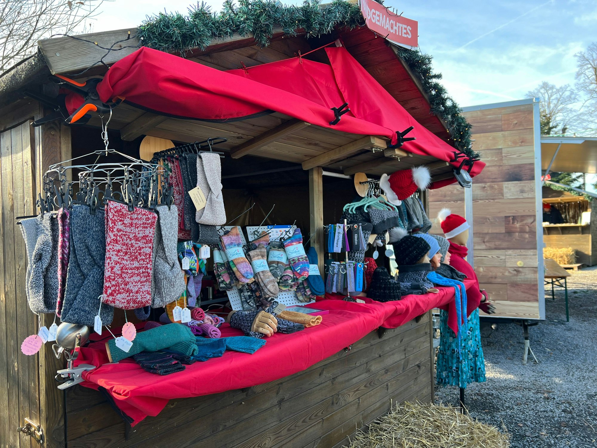 „Hier herrscht eine total gemütliche Stimmung, man trifft nur auf nette Menschen und Aggressivität oder ähnliches hat hier keinen Platz“, erklärte die Remscheiderin. Sie verkaufte in diesem Jahr bereits das vierte Mal selbstgestrickte Ware, die sie mit einer Strickmaschine anfertigt, wobei sie das Zusammenspiel von Technik und Handwerk fasziniert. Anfangs habe sie nur ihre Familie mit Socken ausgestattet, doch mittlerweile fertigt sie von Stirnbändern über Handschuhe, Schals alles Mögliche an. Für sie steht fest: Der Weihnachtsmarkt auf Gut Engelrath gewinnt immer gegenüber den großen, hektischen und unüberschaubaren Märkten. Neben ihrem Stand gab es auch noch allerlei Gebasteltes und geschnitzte Artikel.