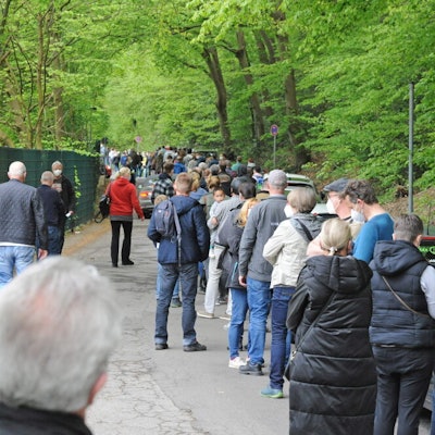 Warteschlange bei der mobilen Impfaktion vor dem Burscheider Megafon.