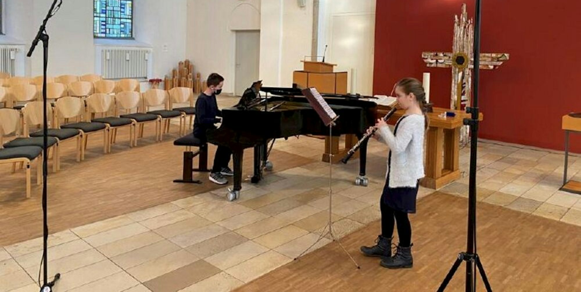 Catharina Frese und Sebastian Bleckmann nahmen ihre Stücke für den Regionalwettbewerb „Jugend musiziert“ in einer Wuppertaler Kirche auf.