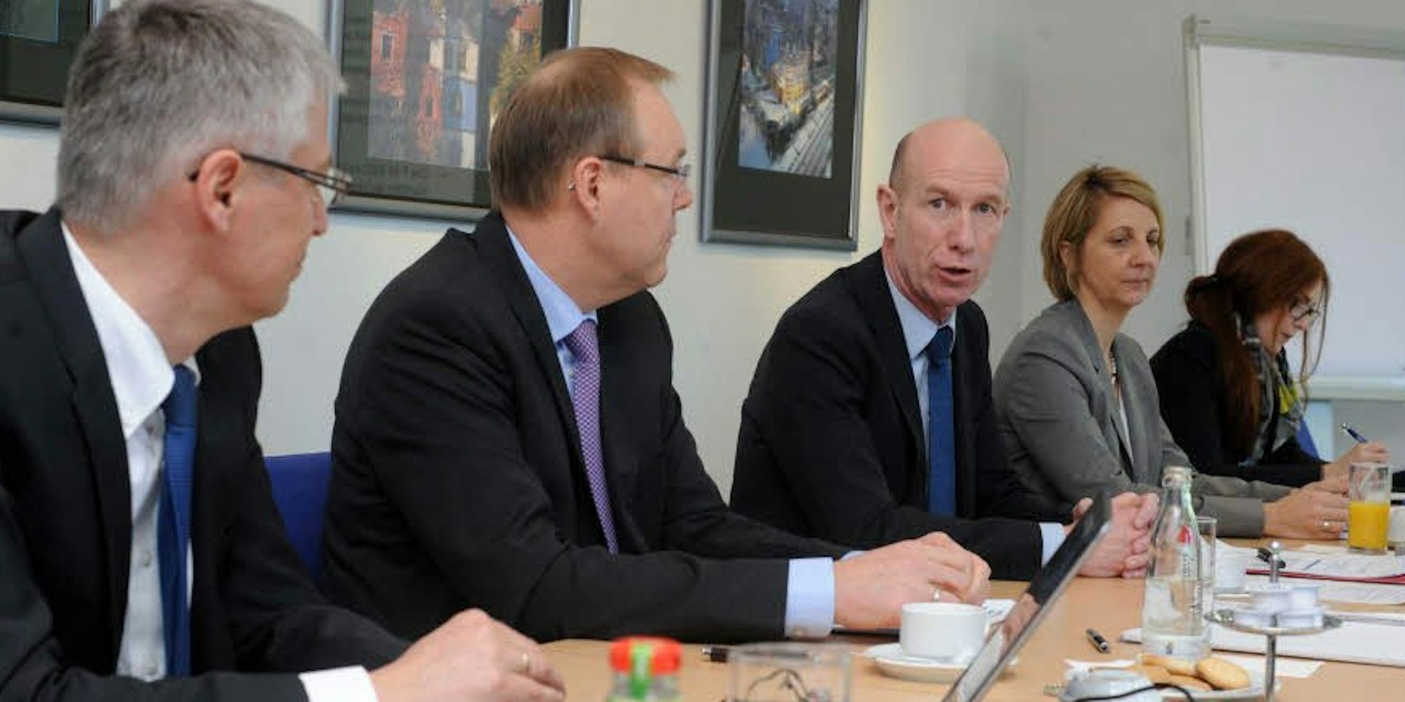 Der Standort Burscheid ist sicher: Nur Positives hatte Federal Mogul mit (von links) Steffen Hoppe, Michael Hedderich, Johannes Pink, Andrea Vogt-Schulz und Ursula Hellstern zu berichten.