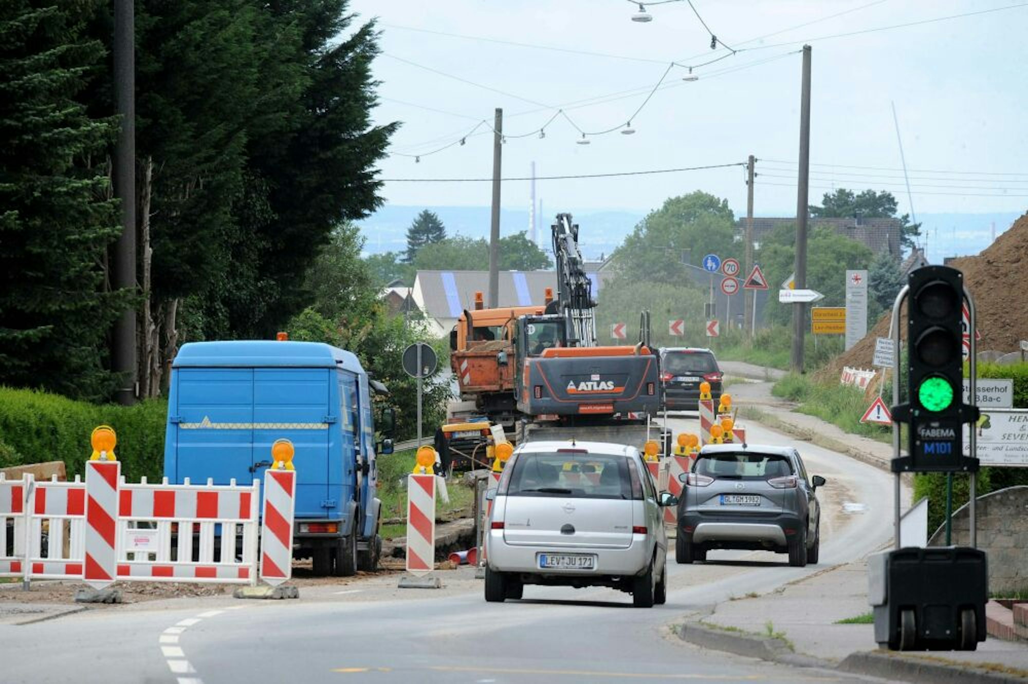 Eine Baustellenampel an der B 51 regelt kurz vorder Stadtgrenze den Verkehr.