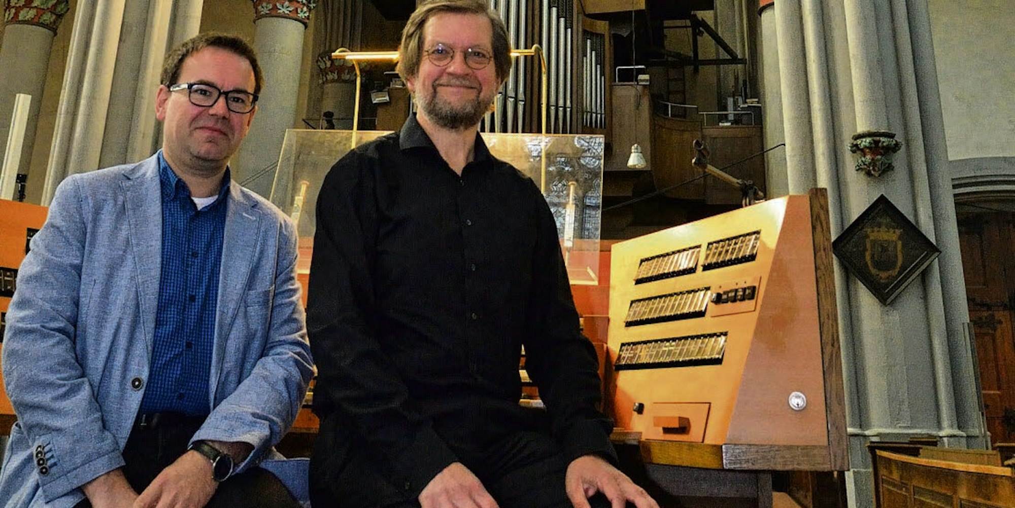 Gemeinsam an der Dom-Orgel: Rolf Müller (links) und Andreas Meisner.