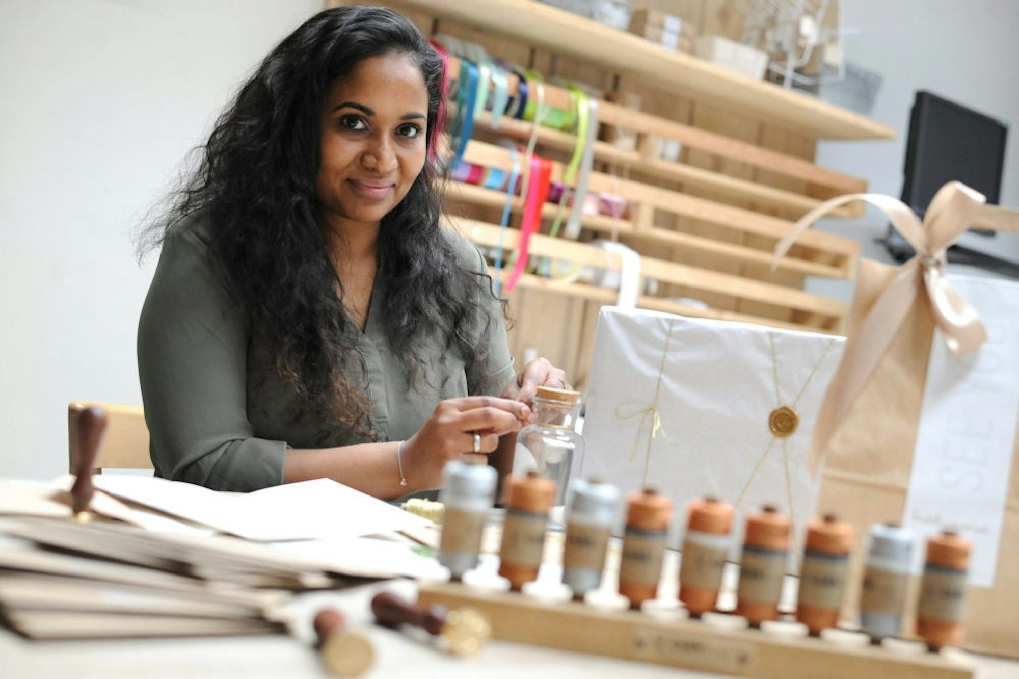 Sujatha Hoffmann ist Webdesignerin, aber die Nachfrage nach Papierprodukten ist stärker. Sie hat eine Papeterie.