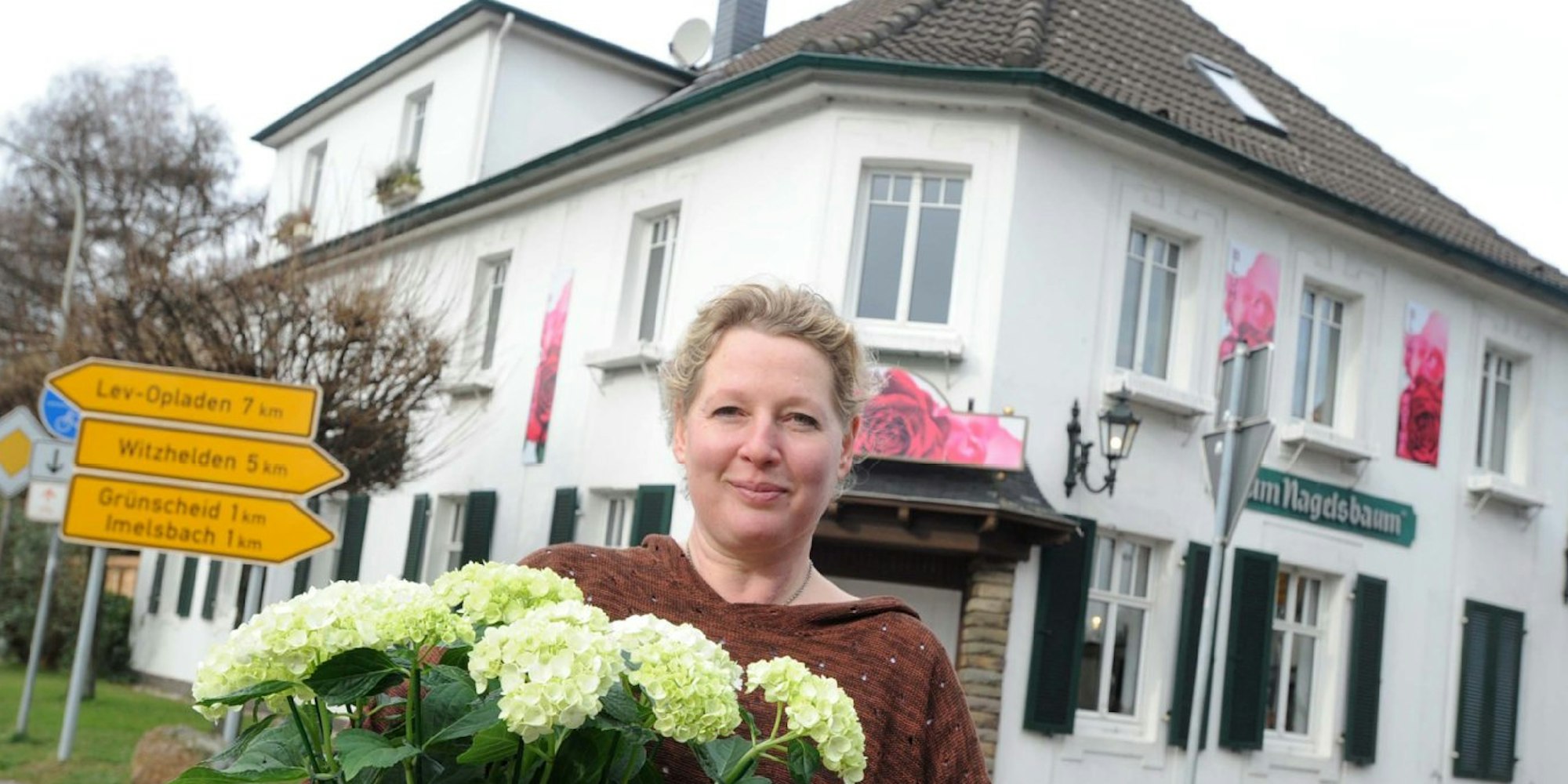 Burscheid – Seit einigen Tagen hat das Traditionshaus „Zum Nagelsbaum“ an der Kreuzung Grünscheid/L 291 einen neuen Mieter. In dem seit den 1920er-Jahren als Gaststätte genutzten Eckhaus werden aber künftig weder Kölsch noch Kaviar serviert, sondern frische Blumen und Pflanzen. Seit einigen Wochen sind die Leverkusener Floristen Kerstin und Hartmut Rothe dabei, das Innenleben der rund 140 Quadratmeter großen Räumlichkeiten geschickt in eine blühende Abenteuerlandschaft zu verwandeln. Ihre Blumendekoration hat besonderem Pfiff: Kerstin Rothe, gelernte Bauzeichnerin, hat mit ihren Mitarbeiterinnen die blühenden Pflanzen rund um das antike Mobiliar drapiert.