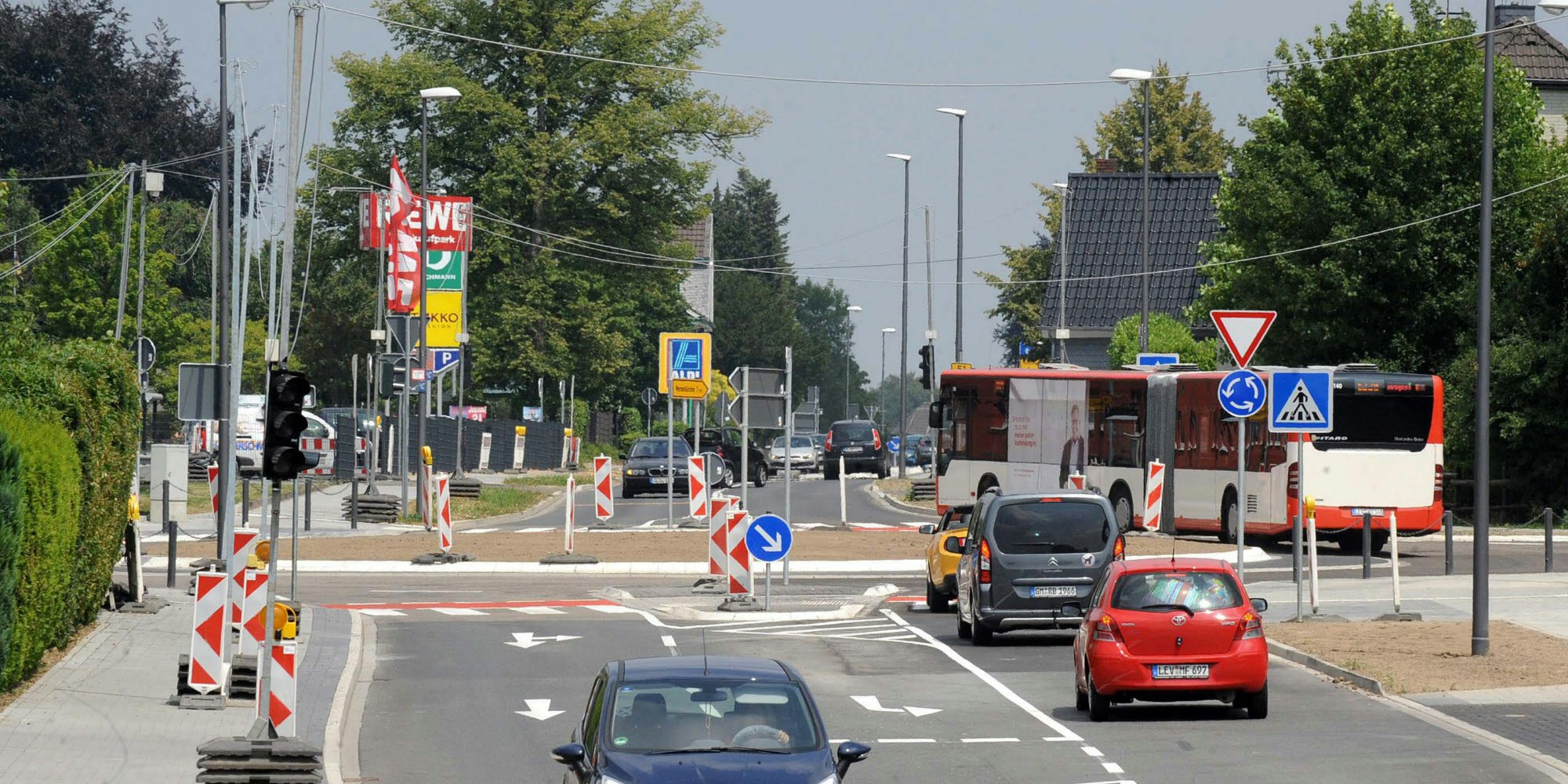 Es geht rund auf der B 51 in Hilgen. In vier Jahren wurde die Bundesstraße mit Kanal, Kreiseln und Busverknüpfungspunkt am Raiffeisenplatz modernisiert. Die Bauarbeiten sind abgeschlossen.