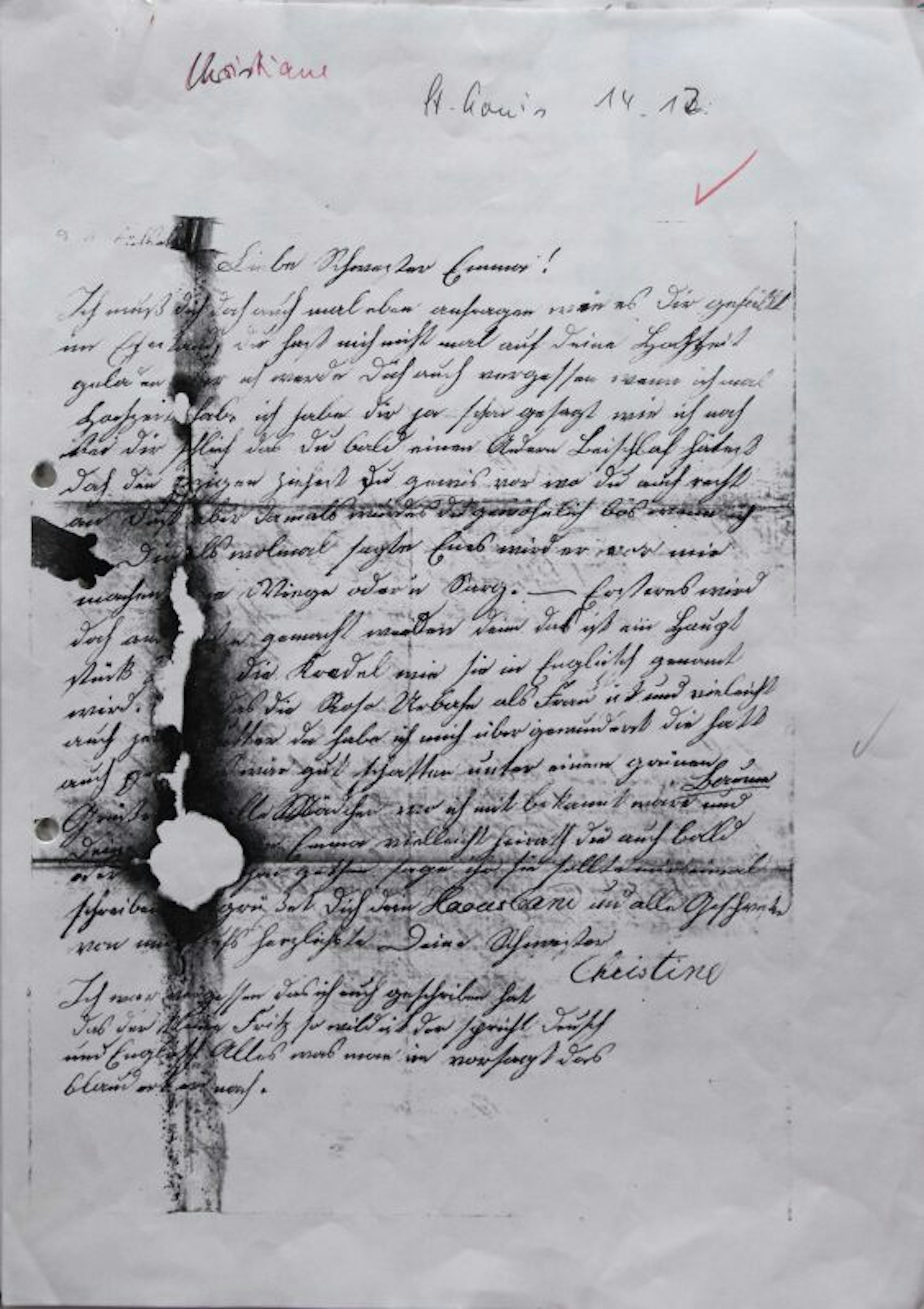 Mäuse fraßen am Brief Christianes, die 1873 an Pocken starb.