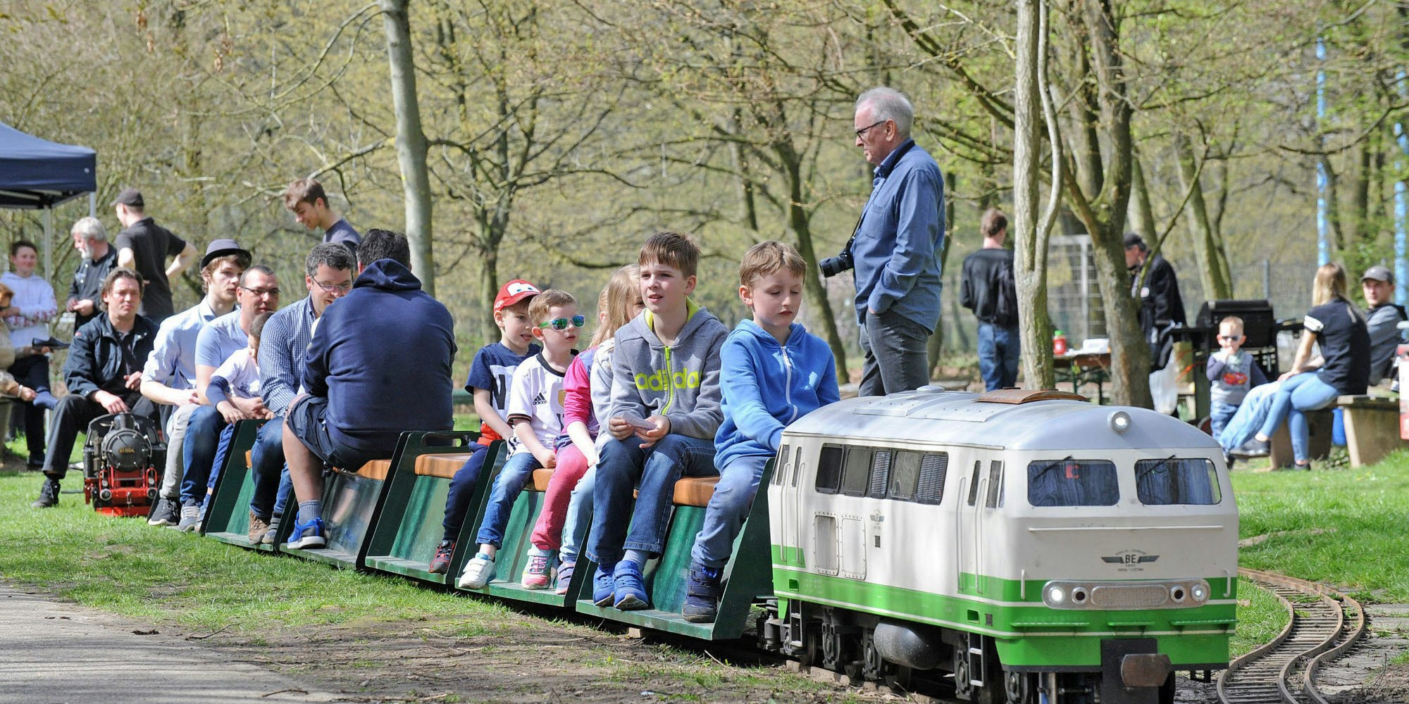 Auf der D 5 drehten Kinder und Erwachsene ihre Runden durch den Park. Das Original wird mit Diesel betrieben, die Miniatur-Lok fährt elektrisch.