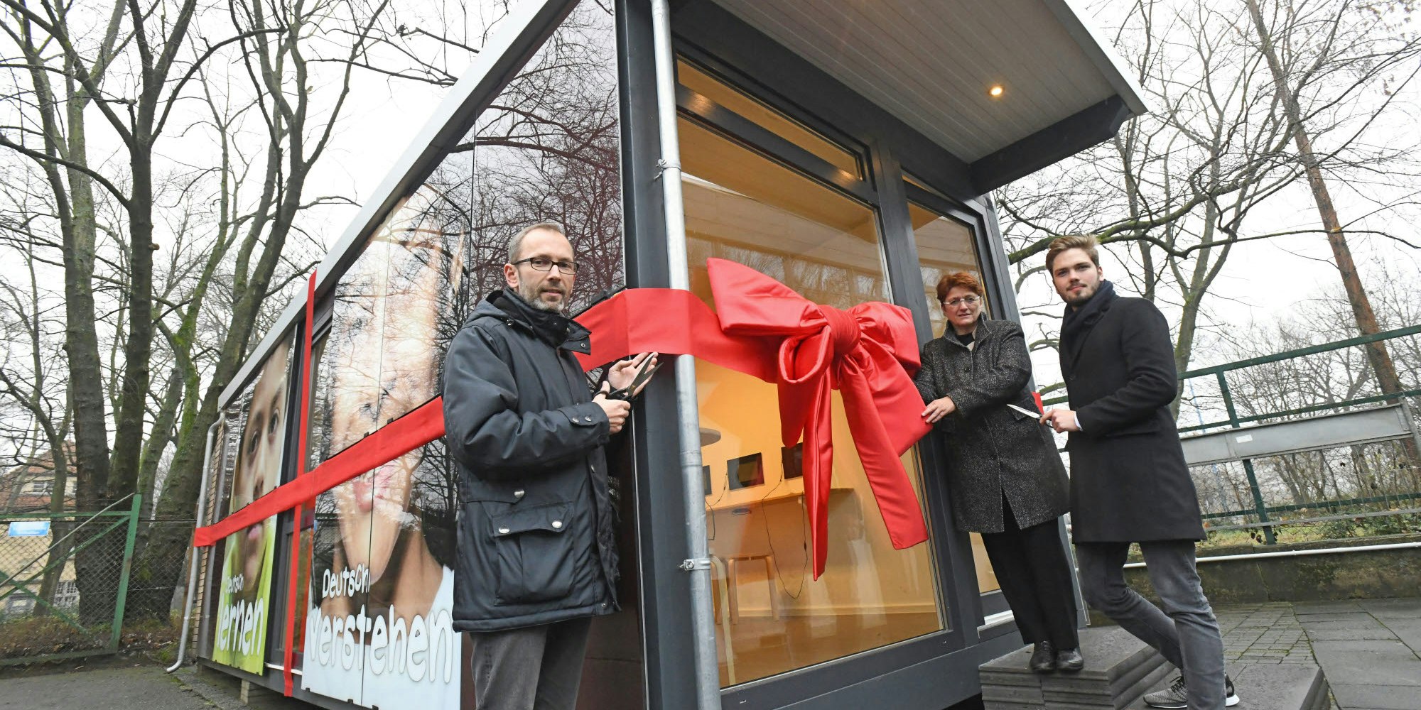 - Lanxess hat die "Com-Box" gekauft und der Stadt übergeben - In dem Container können Flüchtlinge Deutsch lernen