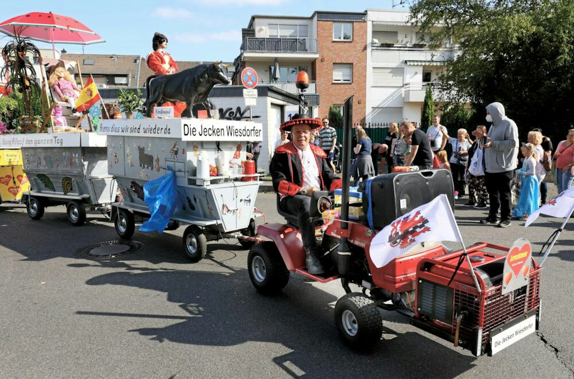 Leverkusen – „Also offiziell ist das hier nur ne Kirmes mit Festumzug“, zwinkert Zugleiter Horst Darbringhaus. „Es fühlt sich aber an wie Karneval im Sommer.“ Nach zwei Jahren Corona-Pause konnten die Bürriger am Sonntag mit Fidelio wieder feiern.
