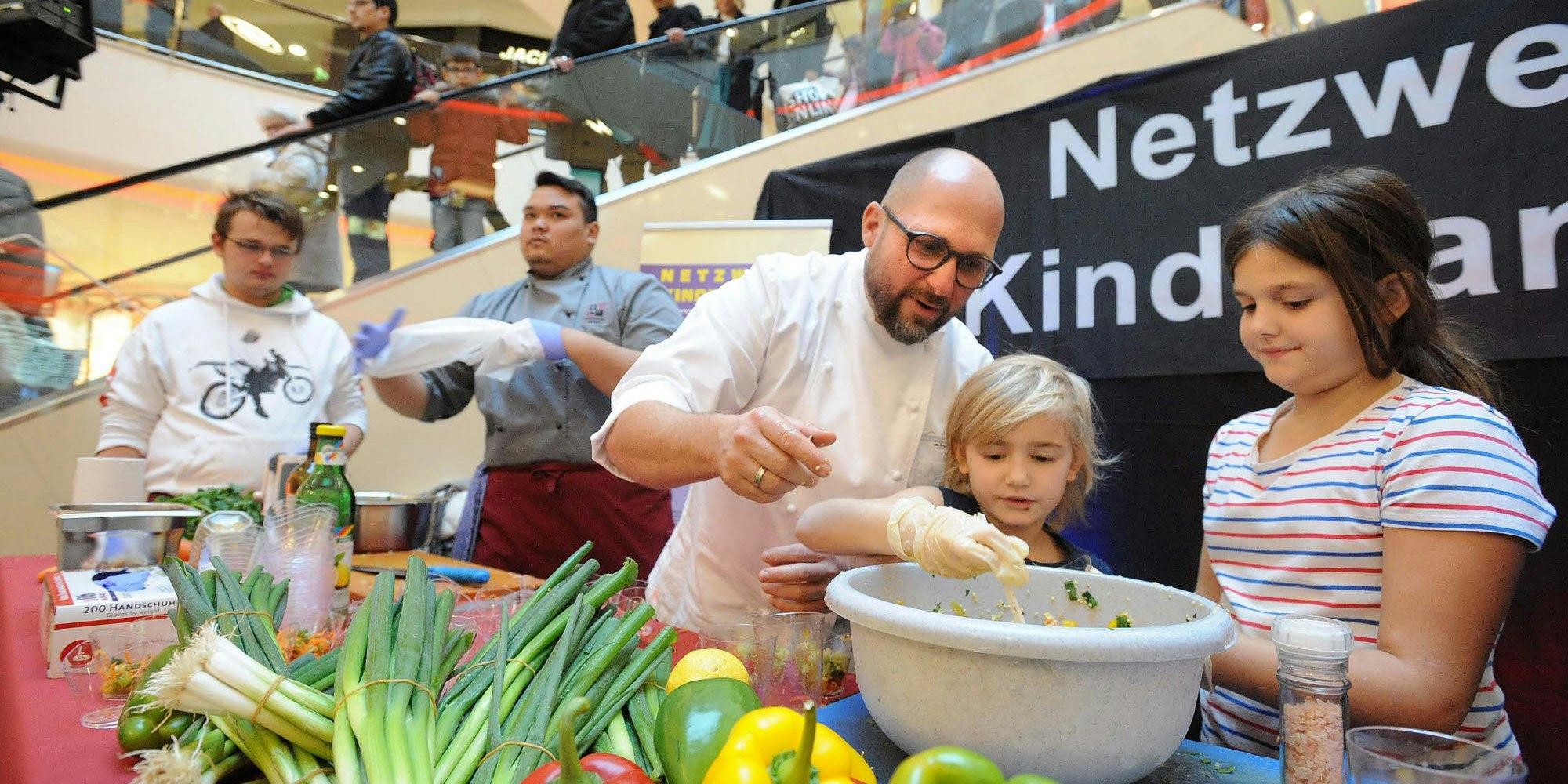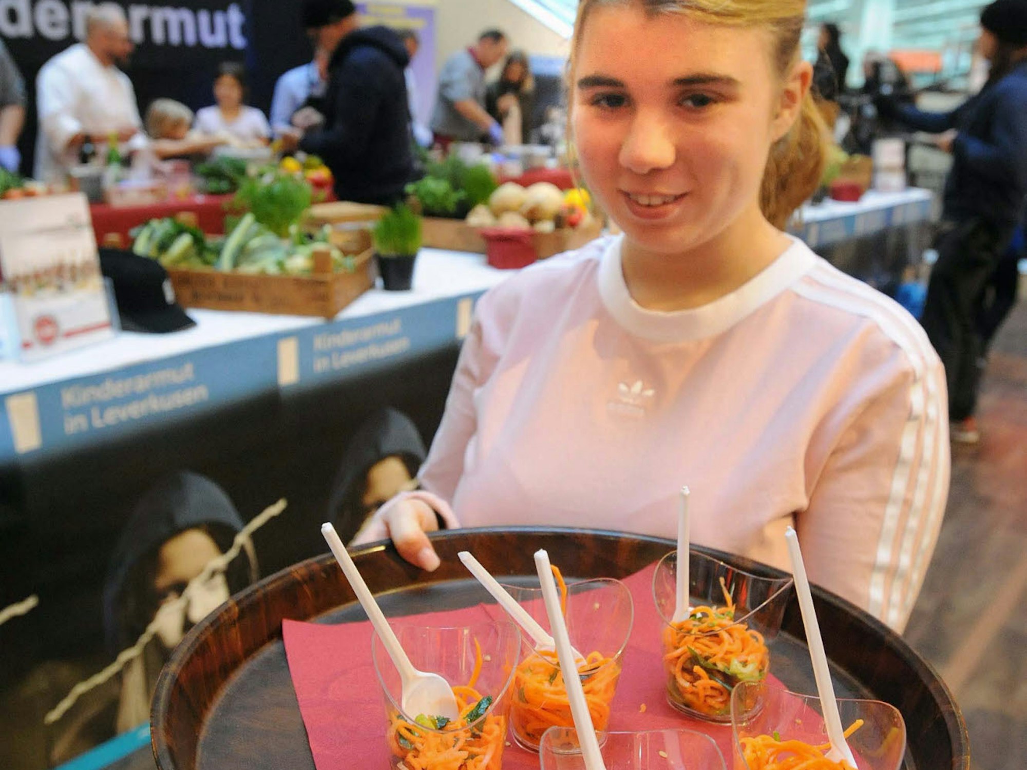 Es soll ein Appell an Politik und Bürger sein, so die Initiatoren des Netzwerks gegen Kinderarmut, die am Samstag in der Rathausgalerie zum zweiten Mal ein Koch-Event veranstalteten. „Wir haben eben zusammengesessen und überlegt, welche Überschrift wir zur Veranstaltung am liebsten lesen möchten“, beginnt Reiner Hilken, Gründer des Netzwerk gegen Kinderarmut und Leiter des Manforter Jugendbunkers, das Gespräch. „Unser Wunsch ist eine Strukturveränderung, die was bewegt und den Kindern und Jugendlichen wirklich hilft. Es reicht nicht, dass wir nur die Zahlen kennen, aber nichts passiert“, so Hilken mit Blick auf den Zettel an der Stellwand auf dem steht, dass 5383 Kinder in Leverkusen von Hartz IV leben. Tendenz steigend. Dafür müssen auf der einen Seite Prioritäten, auch finanzielle, in der Politik gesetzt werden. Auf der anderen Seite gilt es, die betroffenen Menschen zu erreichen.