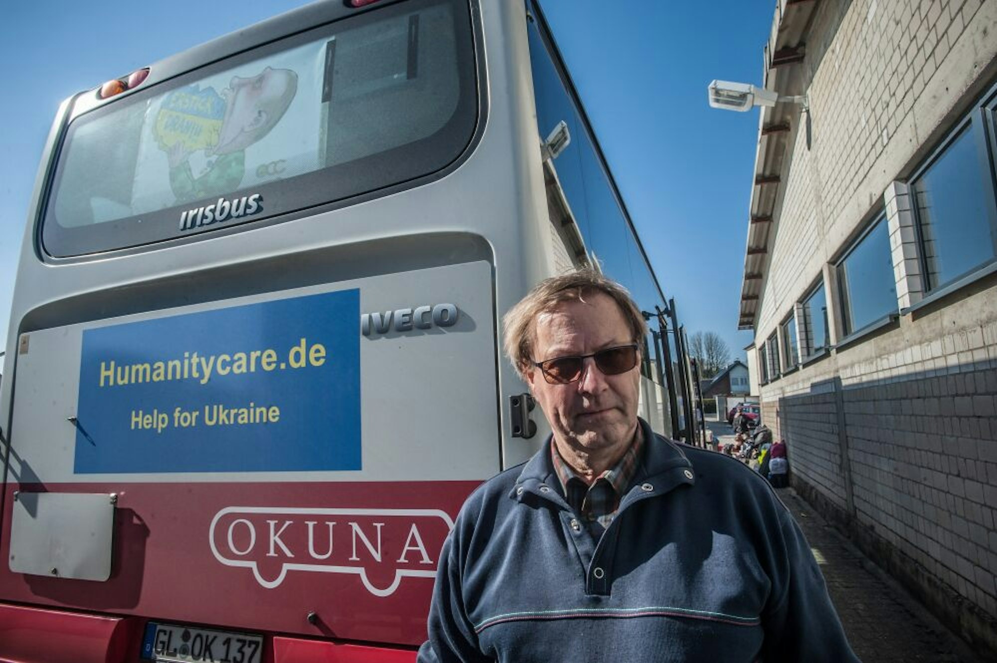 „Dann haben sie bei mir angerufen und wollten einen Bus für den Transport mieten“, erzählt Unternehmer Rainer Hüttebräucker. „Nix mieten, habe ich da gesagt, den stelle ich so zur Verfügung, inklusive zwei Fahrern.“ So brach ein Konvoi mit einem Bus und mehreren Kleintransportern am vergangenen Samstag Richtung Polen auf. Und zurückkommen sollte er nicht leer, sondern mit 75 Menschen, die Zuflucht suchen.