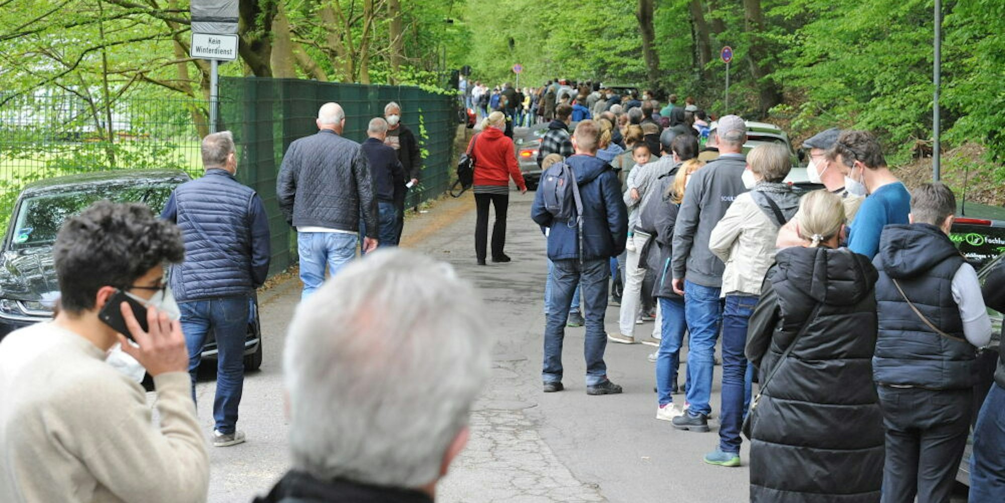 Die Ärzte entschieden sich daraufhin, die Schleusen für alle zu öffnen, um keinen wertvollen Impfstoff verfallen zu lassen: Sie teilten mit, dass ab sofort auch Jüngere und sogar Einwohner aus umliegenden Gemeinden vorbei kommen dürften. Diese Nachricht verbreitete sich über die sozialen Medien, Facebook-Gruppen und Mundpropaganda sofort wie ein Lauffeuer. Aus allen Himmelsrichtungen strömten Impfwillige Richtung Freibad. Autos mit Kennzeichen aus Solingen, Leverkusen, Köln und dem Kreis Mettmann füllten die Parkplätze und verstopften die schmale Straße Am Schulbusch.