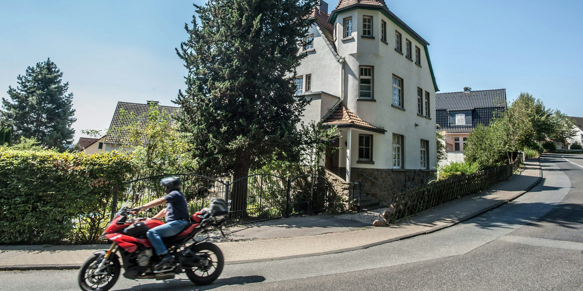 Die Kurvenstrecken im Bergischen Land (im Bild die Leichlinger Kirchstraße) sind ein beliebtes Revier für Motorradfahrer.