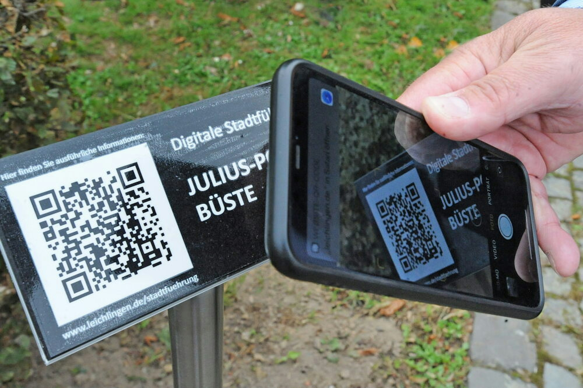 Der QR-Code an den Stelen wird mit dem Handy gescannt.