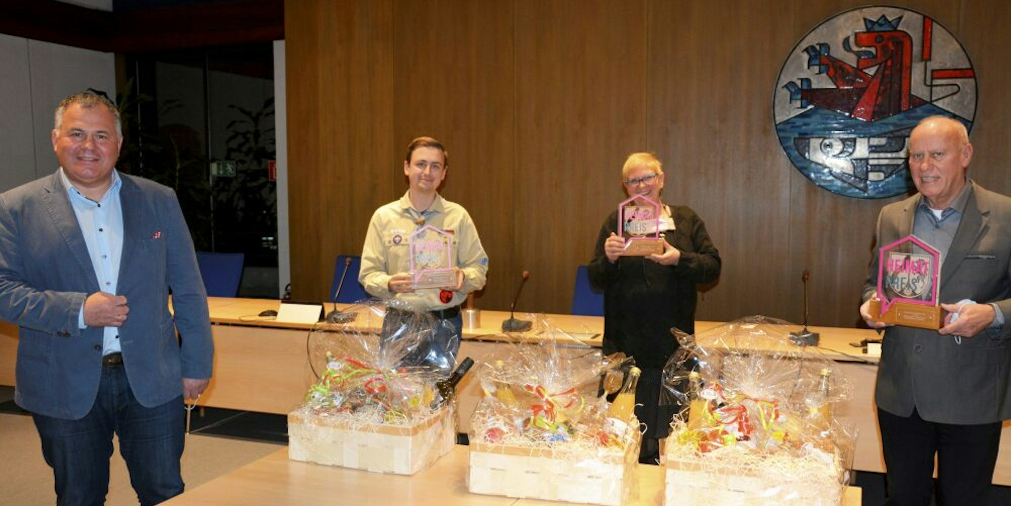 Die Gewinner des zum zweiten Mal ausgelobten und mit Geldprämien aus Landesmitteln ausgestatteten Heimatpreises sind im Oktober von den Mitgliedern des Ausschusses für Stadtentwicklung und Wirtschaftsförderung ausgewählt worden. Unter neun Bewerbern sind drei Preisträger gekürt worden. Mit Wirtschaftsförderin Myrjam Passing überreichte Steffes den Vertretern der Vereine ihre Trophäen.