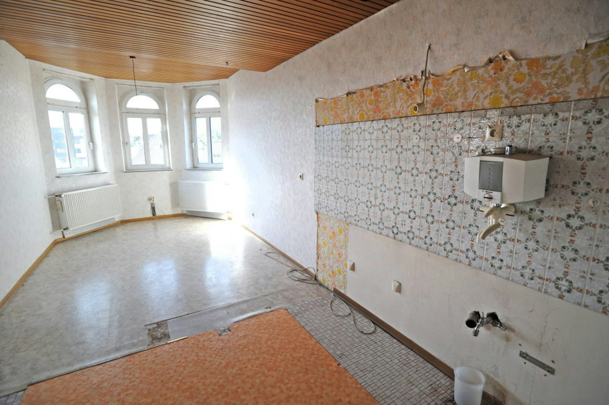 Das Turmzimmer im ersten Stock des alten Leichlinger Rathauses mit Erker-Ausblick zur Neukirchener Straße vor der Renovierung.