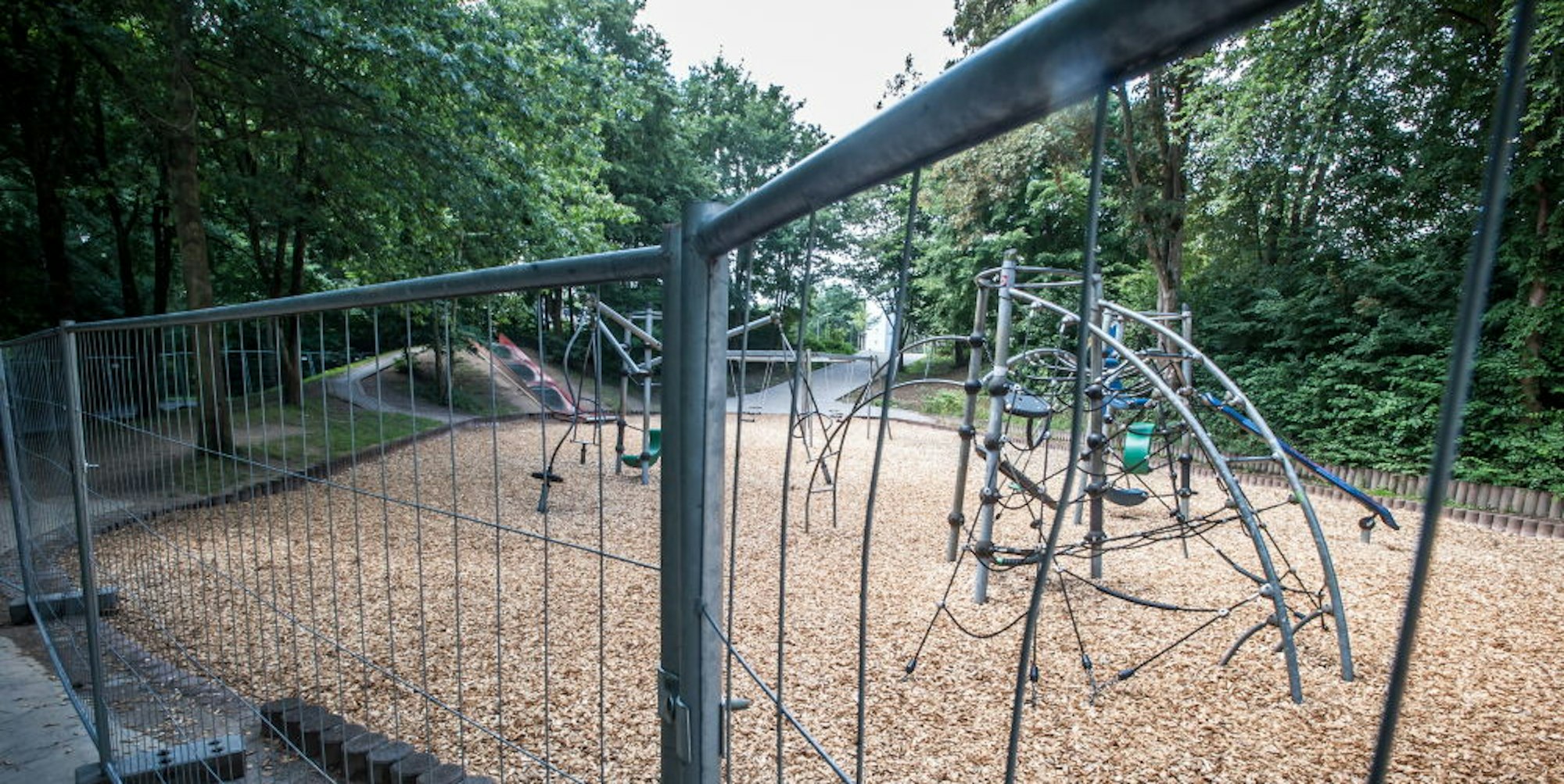 Leider gesperrt: Der große Leichlinger Spielplatz an der Wupper unterhalb der Feuerwache Am Wallgraben.