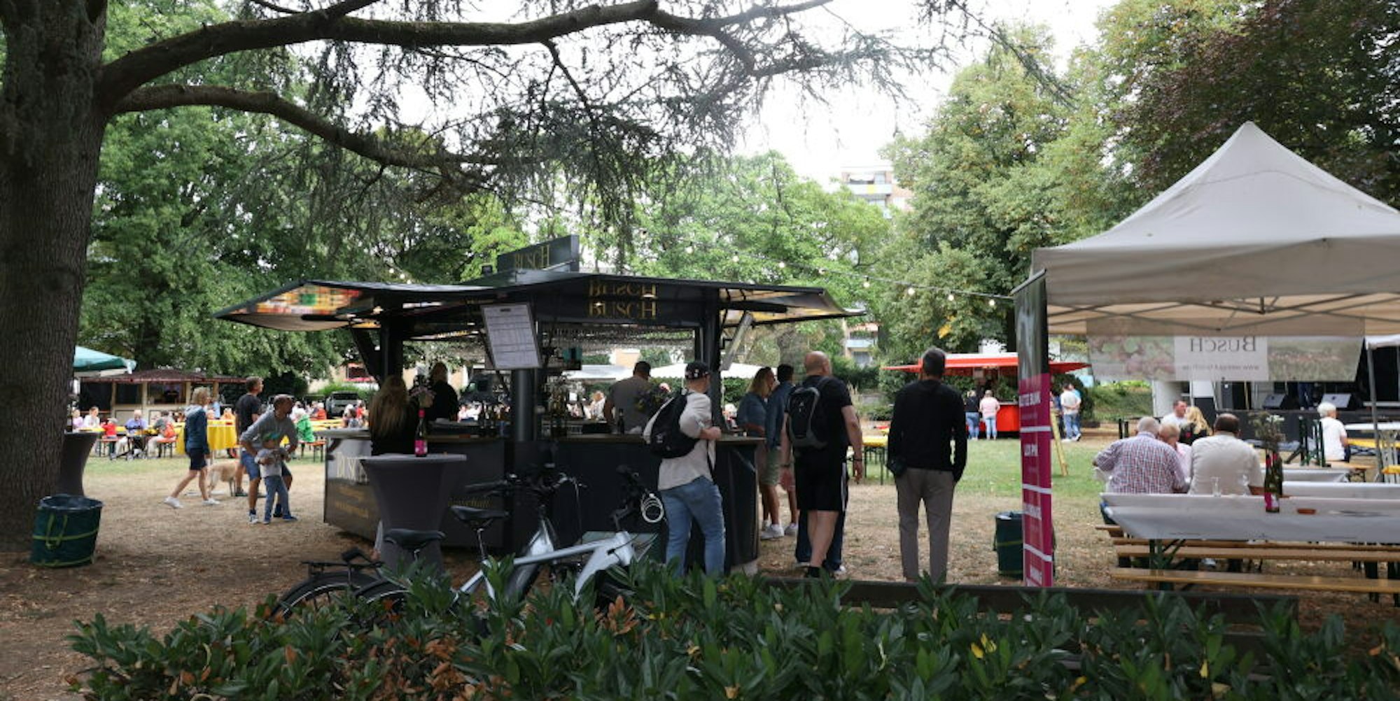 Gleich nebenan, im neuen Stadtpark, fand zeitgleich das jährliche Winzerfest statt. In diesem Jahr auch endlich wieder ohne Corona-Einschränkungen. Seit 2015 gibt er nun schon den Leichlinger Bürgern die Chance, im Spätsommer die unterschiedlichsten Weine direkt vom Erzeugerweingut zu genießen.