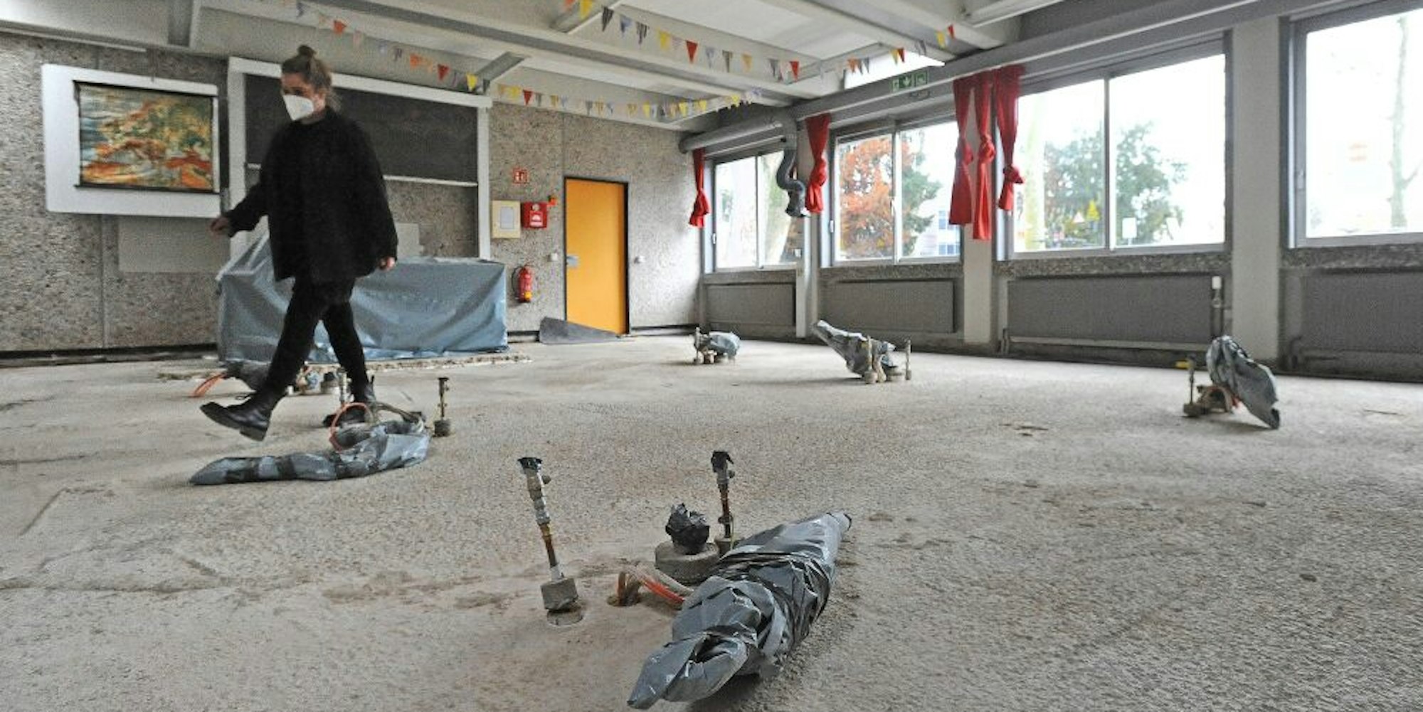 Auch fünf Monate nach der Flut laufen im Erdgeschoss der Grundschule Am Hammer noch Bautrockner und Lüfter.