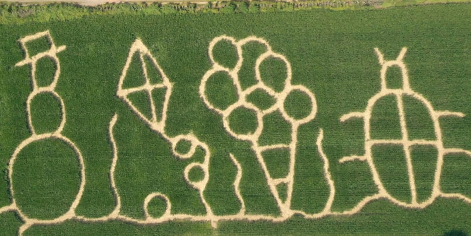 Die vier Jahreszeiten als Motive im Maislabyrinth in Krähwinkel.