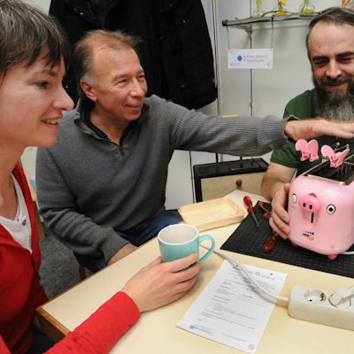 ■ Das kurioseste Objekt: Eine Fotografie von Peter Thönes. Dem Leichlinger ist 2005 in einem öffentlichen WC im Londoner Regent’s Park ein seltener Schnappschuss gelungen. Sein originelles Farbbild zeigt einen Mann von hinten am Pissoir, hinter dem seine vier Windhunde anstehen. „Nur nicht drängeln!“ hat Thönes den tierischen Moment genannt, der nicht gestellt ist, sondern ihm zufällig vor die Linse kam. Er hat so schnell die Kamera gezückt, dass der Mann am Becken gar nicht gemerkt hat, dass er aufgenommen worden ist, erzählte Thönes im Quartierstreff die Geschichte des Bildes. Es fand für 100 Euro einen Besitzer mit Humor. „Letzte Chance vor dem Brexit“, hatte Steffes den Preis erfolgreich hochgeschraubt.