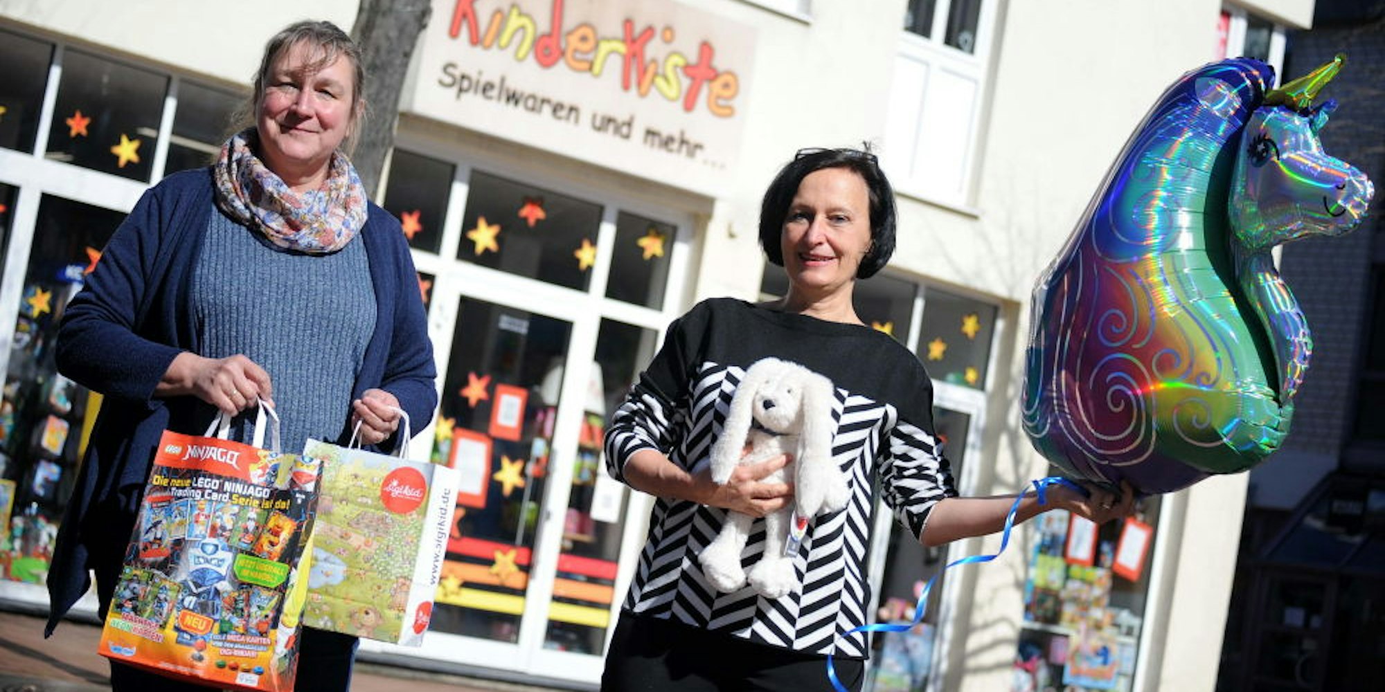 Für die Kleinen und Großen, denen das stille Herumsitzen bereits zu viel wird, hat die Kinderkiste ebenfalls notgedrungen einen Lieferservice installiert. Die Inhaberinnen Monika Jellwitzki und Kathrin Weber hat die Zwangsschließung „direkt zwischen die Augen getroffen.“ Kaum hatten sie sich nach der Spielemesse mit neuen Artikeln eingedeckt, um fürs Ostergeschäft gewappnet zu sein, kam Corona und änderte alles. Die Kosten bekämen sie kaum gedeckt und Nachbestellungen seien derzeit durch die Lieferanten nicht möglich. Doch hätte ihr Angebot alles, was man in diesen Zeiten brauche, um auf andere Gedanken zu kommen, bestätigte Jellwitzki.