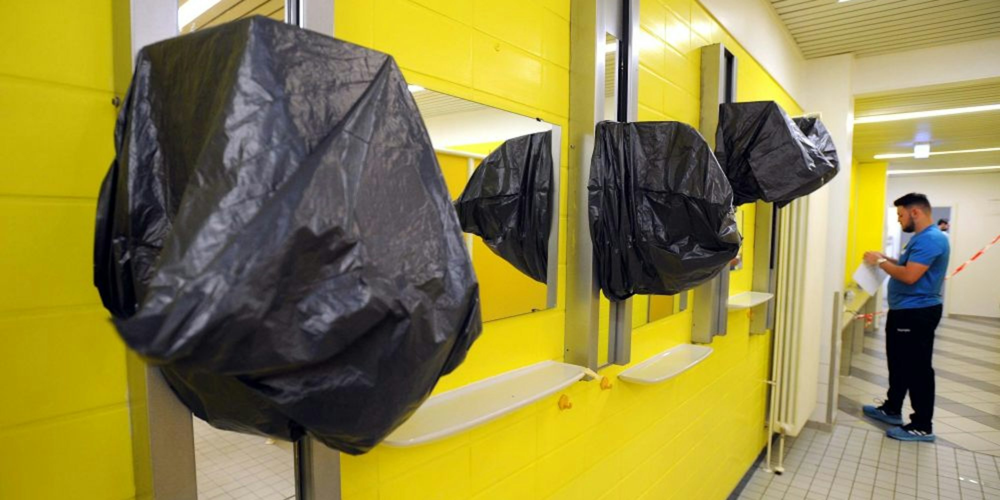 Die Haartrockner dürfen nicht benutzt werden: Corona-Alltag im Hallenbad.