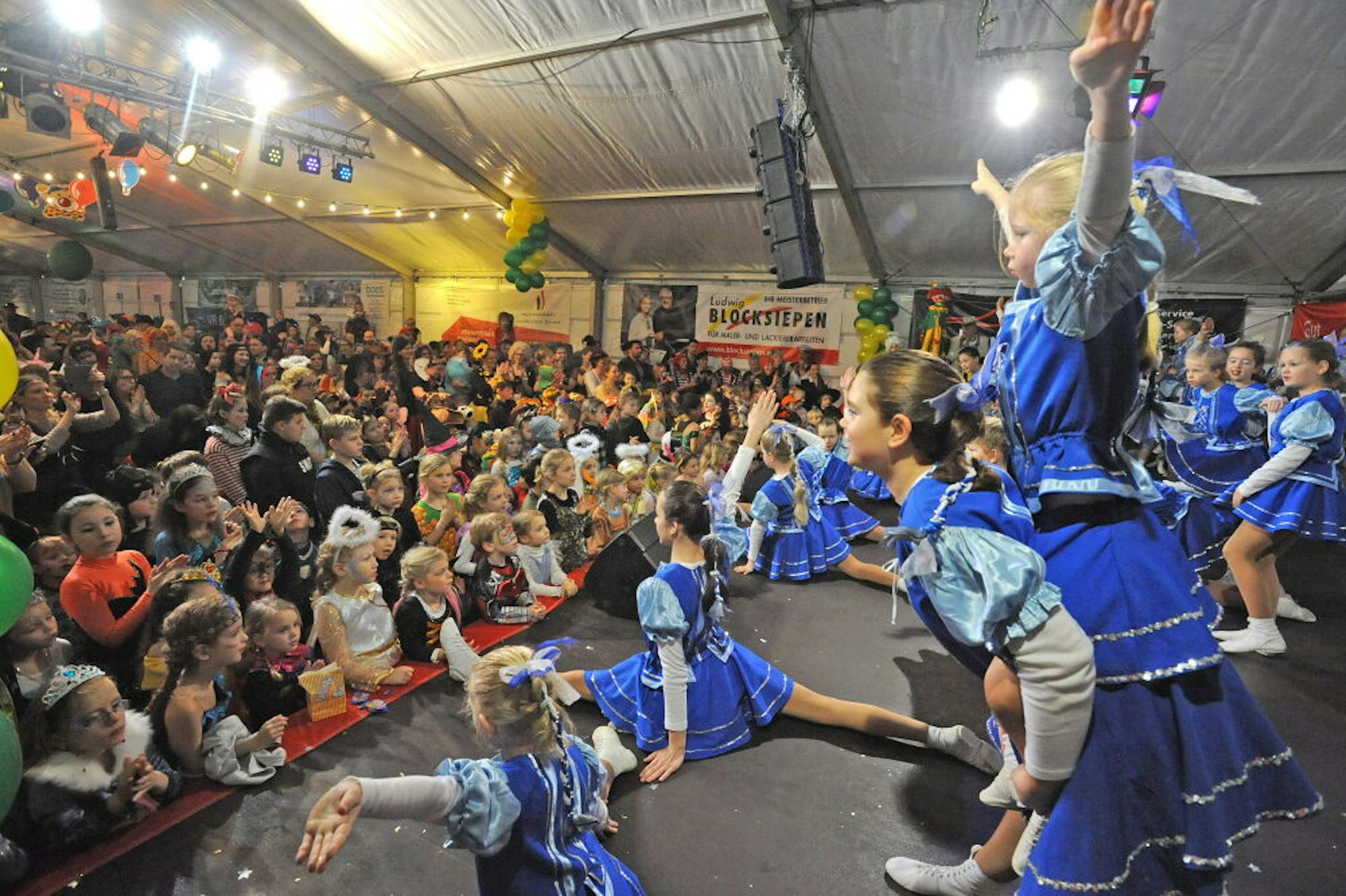 Kindersitzung im Festzelt vor dem Leichlinger Rathaus. Ob das Zelt 2022 wieder aufgebaut wird, ist noch fraglich.