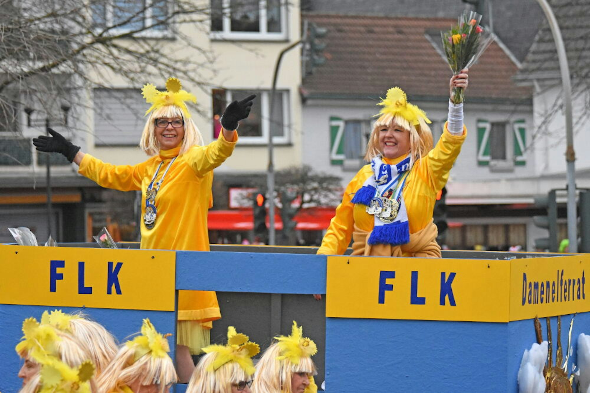 Strüßcher und Kamelle vom Damenelferrat beim Blütensamstagszug 2020. Die Damensitzung gibt es diesmal in Bergisch Neukirchen.