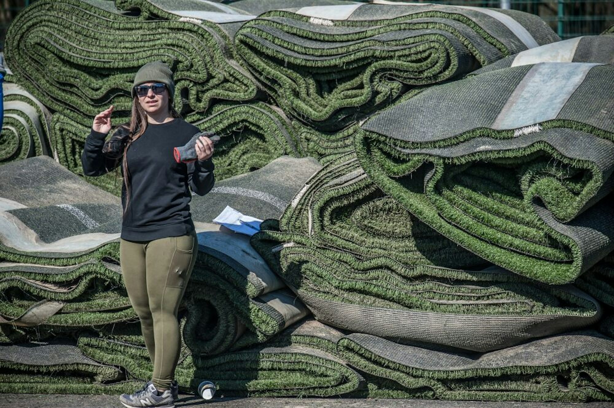 Zwar ging der Kunstrasen wie geschnittenes Brot weg, doch sind noch sehr viele Bahnen übrig geblieben.