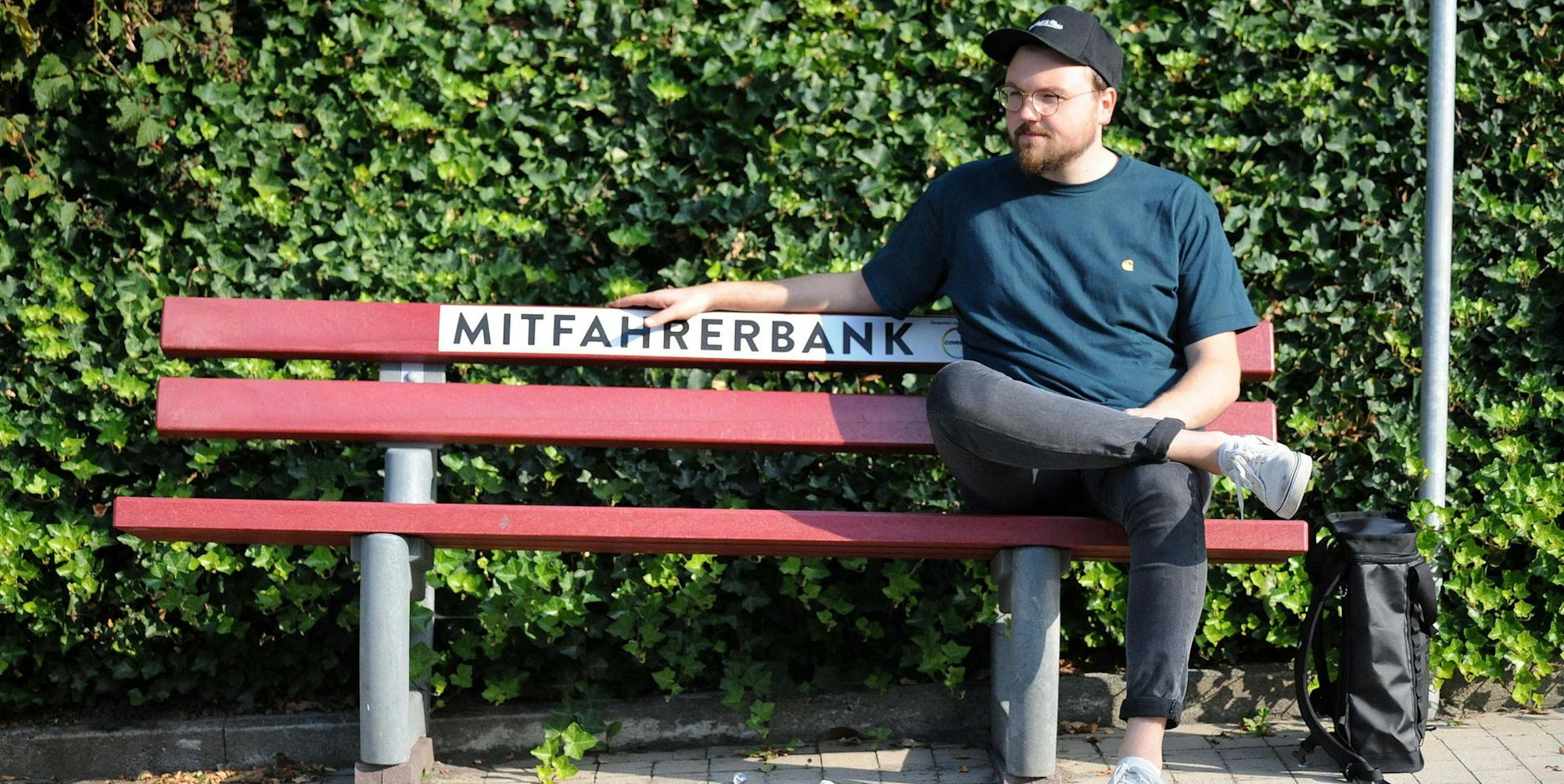 Britta macht die Bilder, ich hocke auf der Bank. Als Model sozusagen. Konnte ich noch nie, aber hat wohl ganz gut geklappt. Als alles fertig ist, setzt sich meine Kollegin zu mir und das Experiment kann beginnen. Wir reden noch ein wenig über Autos und Urlaub, bevor sie zum nächsten Termin muss. Und schon nach wenigen Minuten hält tatsächlich ein Auto an. Ob ich mitfahren möchte, fragt der Fahrer. „Ja, gerne“, antworte ich und steige ein. Alexander Comes heißt der Mann, der mich mitnimmt. „Da ist doch überhaupt nichts dabei. Ich verstehe nicht, warum die Leute vorbeifahren“, sagt er. Die Fahrt dauert nicht lange. Knapp fünf Minuten. Dann sind wir am Bahnhof. Ich wollte zwar eigentlich ins Zentrum, aber gut. Man muss sich als Mitfahrer eben anpassen.