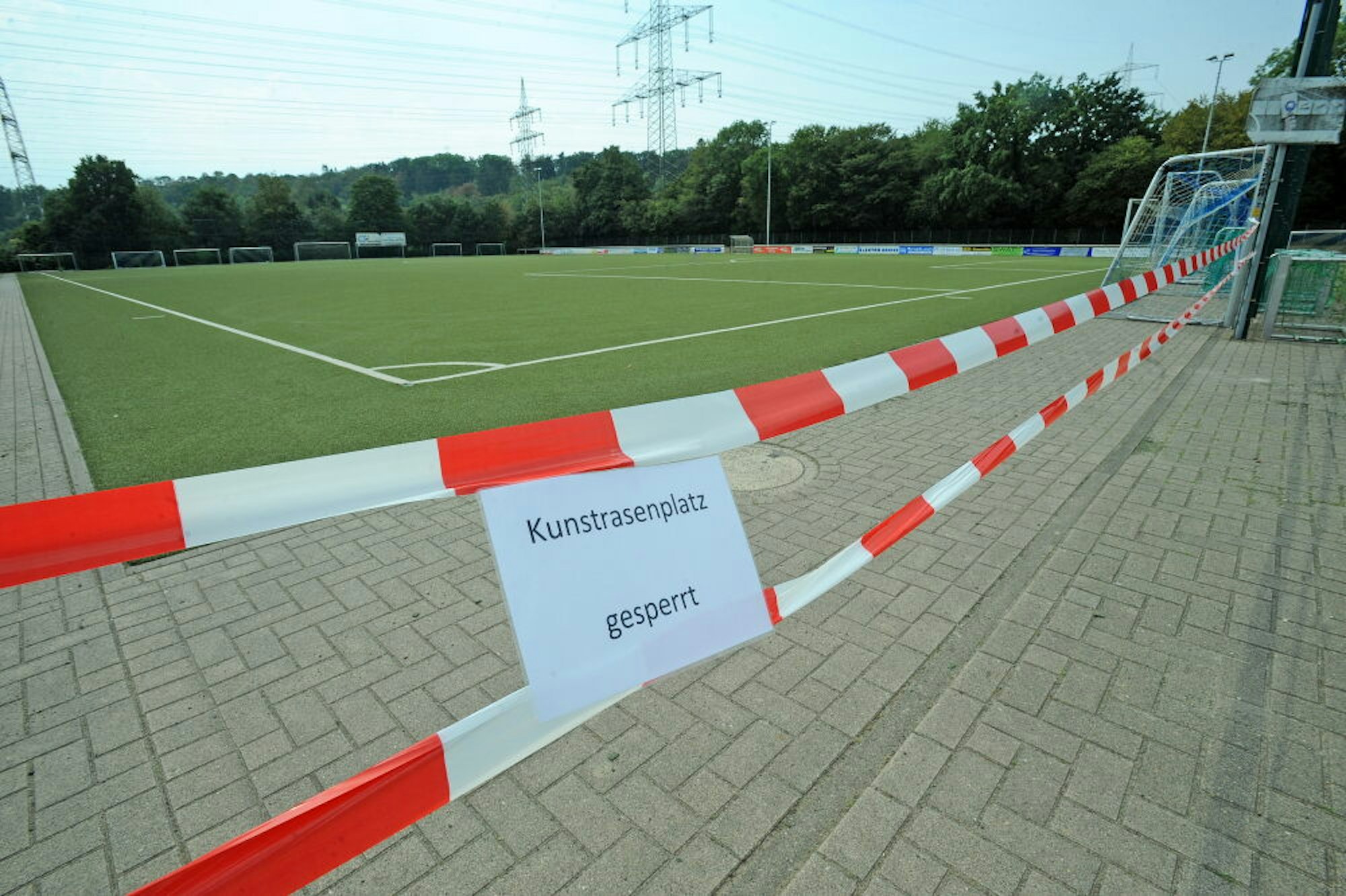 Weil das Granulat auf dem Kunstrasenplatz in der sengenden Sonnenhitze zu Klumpen gebacken wird, musste die Stadt den Sportplatz in der Balker Aue sperren.
