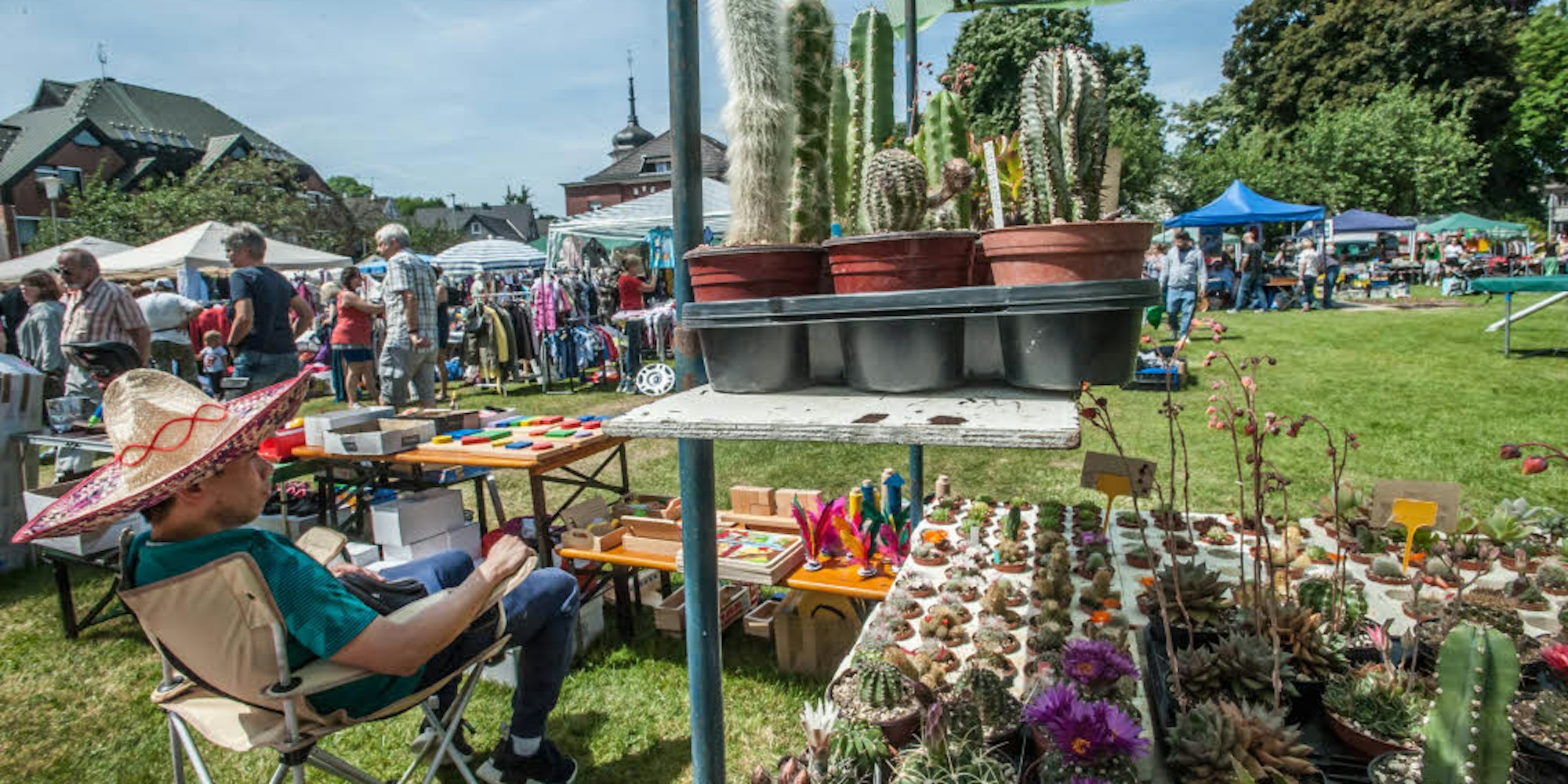 Schattenplätze unter den Bäum waren bei den Leichlinger Trödeltagen im Stadtpark am Busbahnhof begehrt.