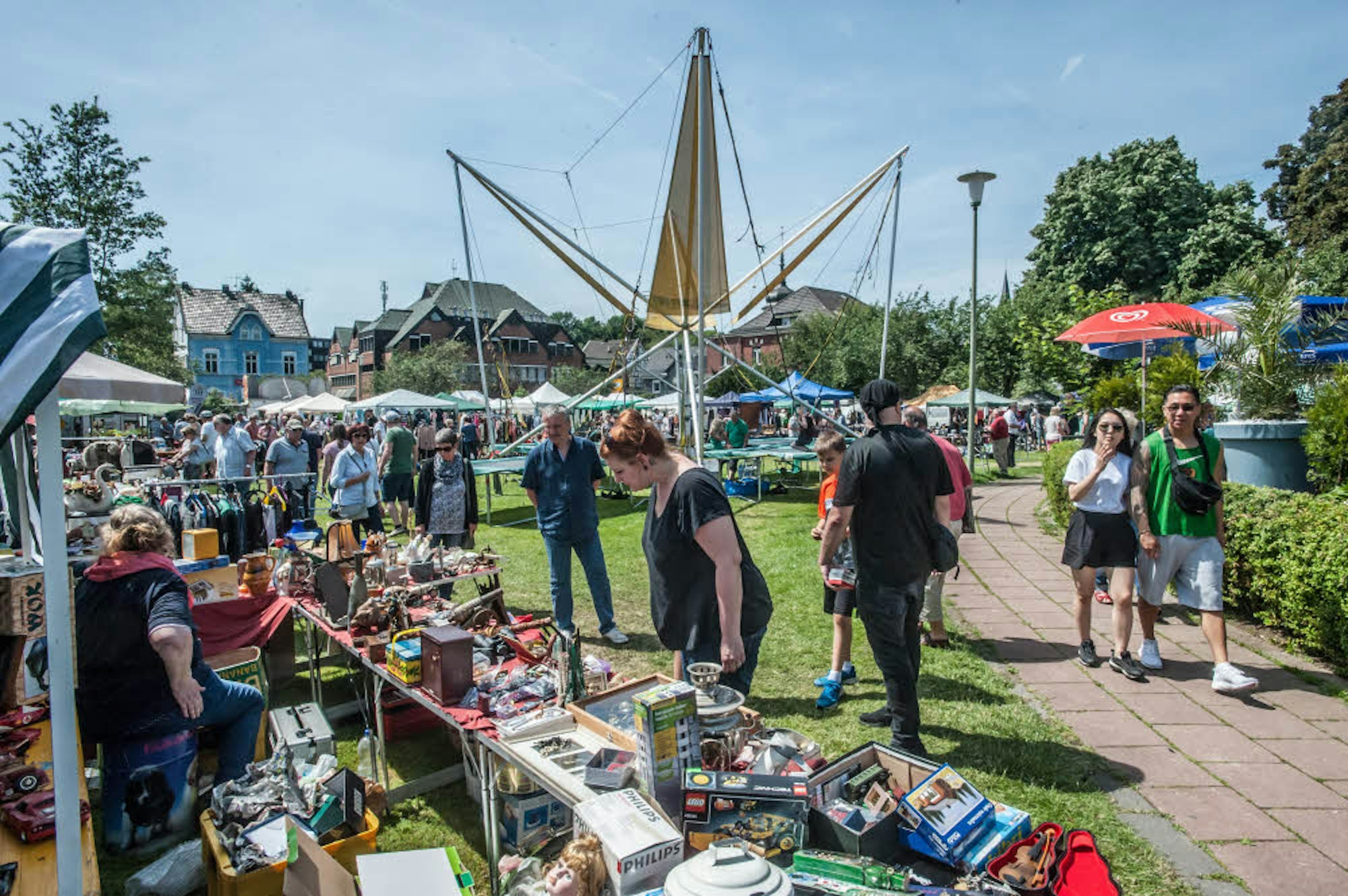 Hausrat, Spielzeug, Elektrogeräte: Im alten Stadtpark konnten Sammler stöbern und Kinder Trampolin springen.