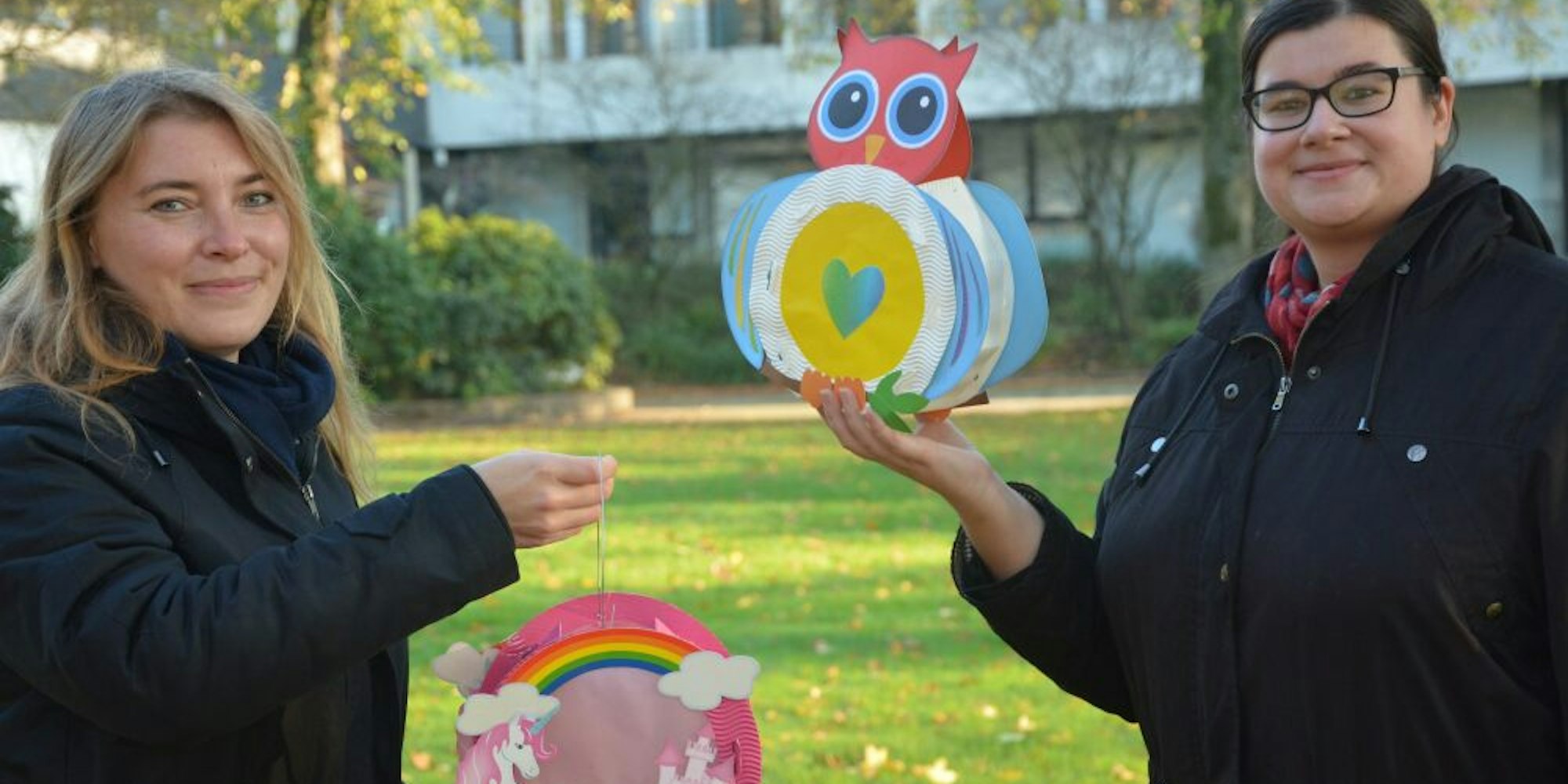 Wirtschaftsförderin Myrjam Passing (links) und Aletta Wieczorek vom Bürgermeister-Büro rufen zum Martinsleuchten auf.