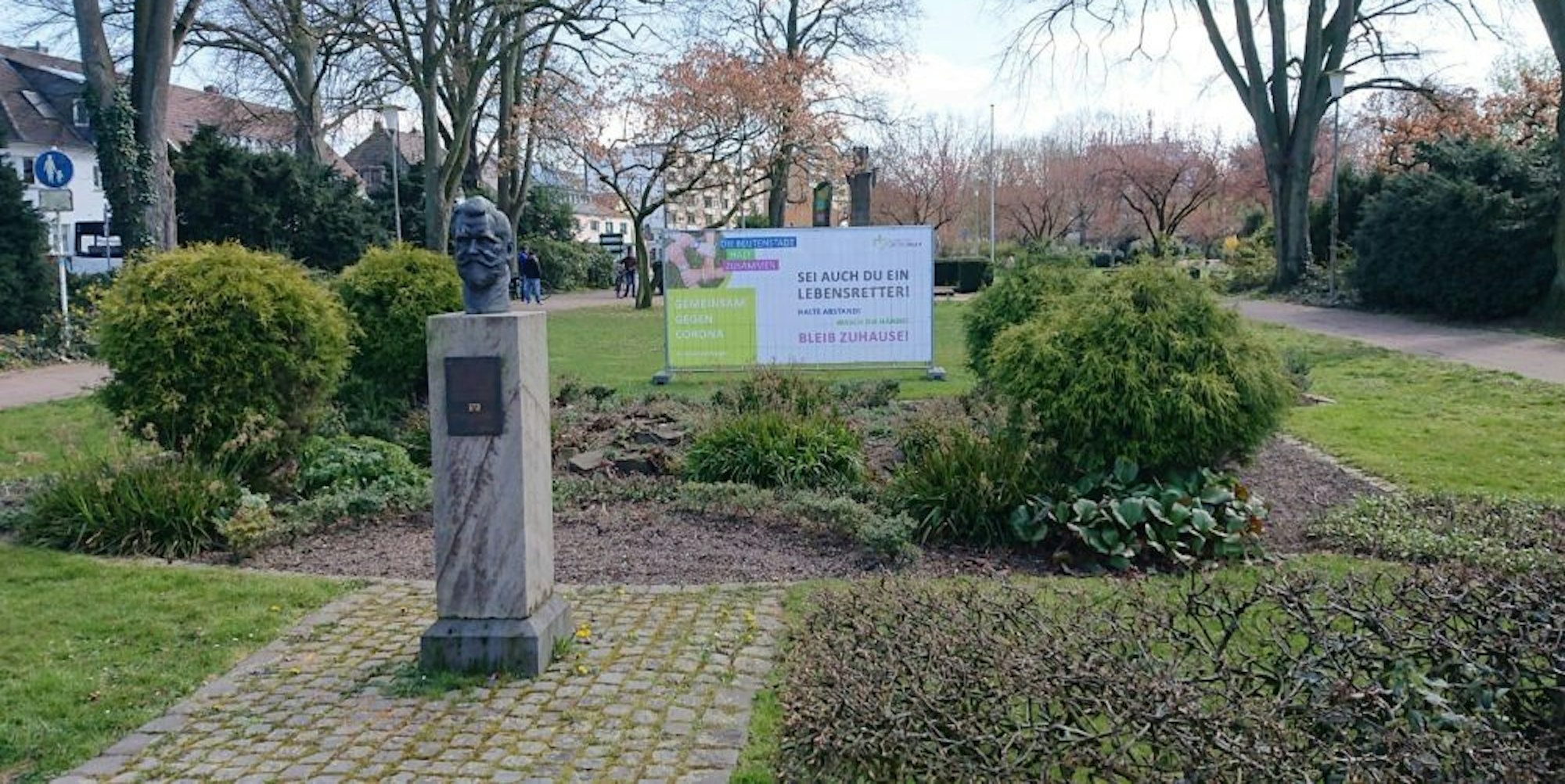 Auch für die Öffentlichkeitsarbeit muss die Stadt in der Corona-Krise Geld bereitstellen, zum Beispiel für die Serie von Großplakaten wie dieses im Stadtpark.