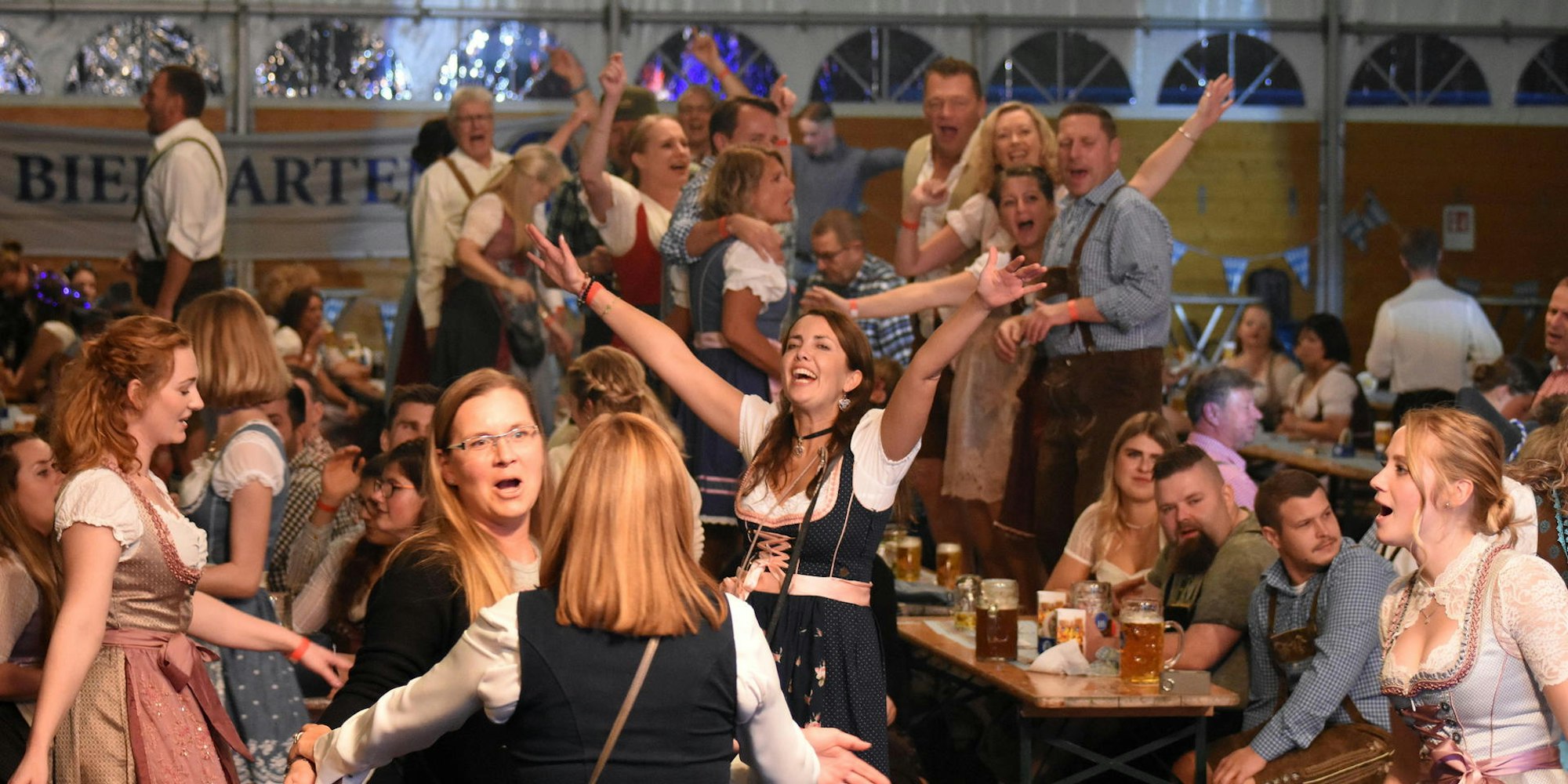 Veranstalter Joshua Mers fand das in Ordnung: „Natürlich wünschen wir uns eine oktoberfesttypische Kleidung, wir wissen aber auch, dass viele Leichlingerinnen und Leichlinger ihre Dirndl und Lederhosen im Keller gelagert hatten und diese durch die Flutkatastrophe verloren haben. Wir lassen also niemanden vor dem Zelt stehen, nur weil er keine Tracht trägt – diese sind ja auch nicht günstig.“