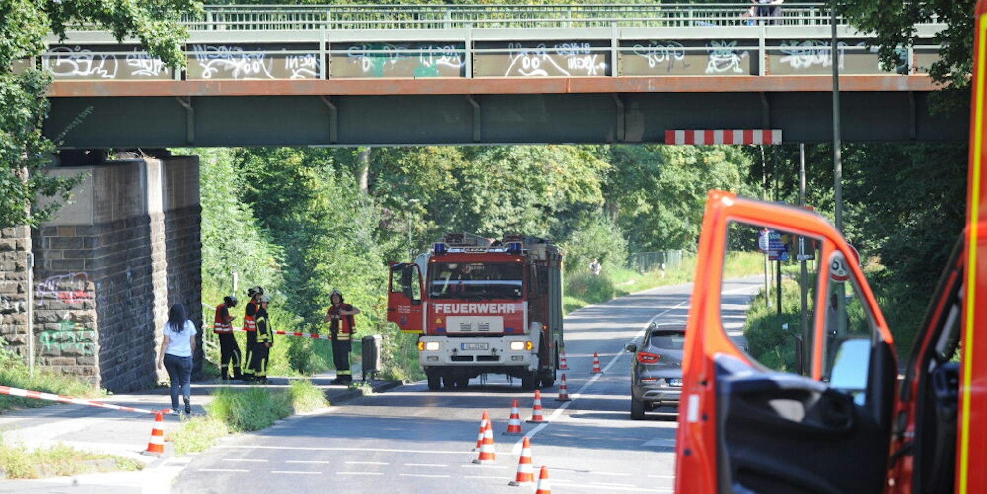 Nicht nur die Opladener Straße wurde in Höhe der Einmündung des Ostlandwegs gesperrt, auch der Zugverkehr auf der Bahnstrecke zwischen Leichlingen und Opladen wurde gestoppt, bis die Brücke auf mögliche Schäden untersucht worden war.