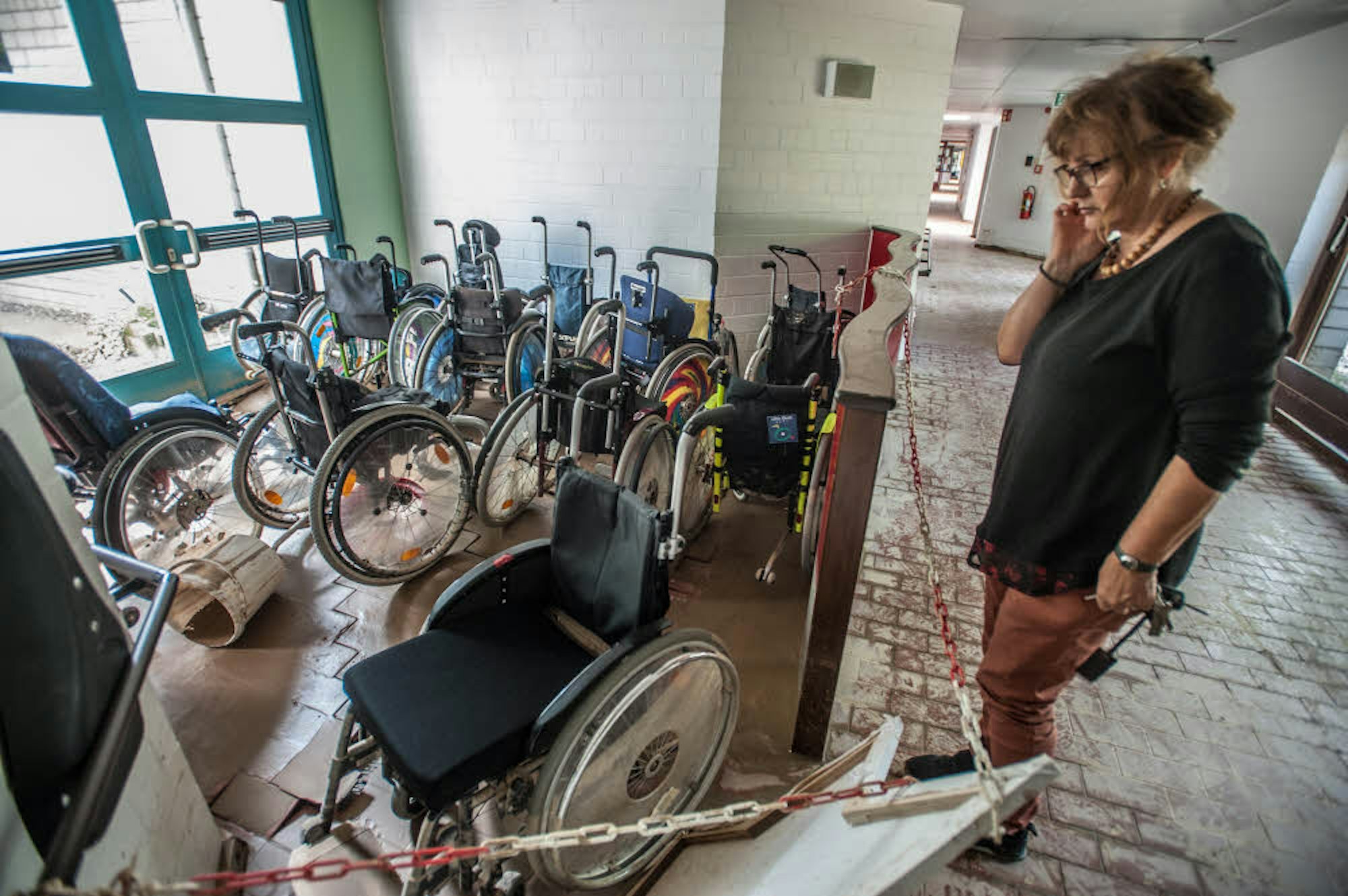 Millionenschaden: Rollstühle, Schwimmbad, Turnhalle und Klassenzimmer gingen in den Fluten des nächtlichen Starkregens unter.