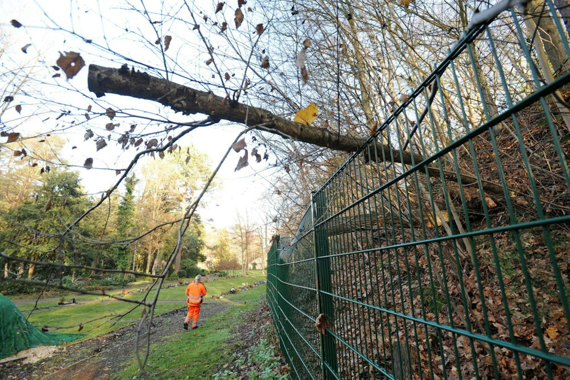 Ab 4. Januar sollen die Gefahrenbereiche an den abgesperrten Rändern des Friedhofs durchforstet werden. Das könne eine Woche dauern.