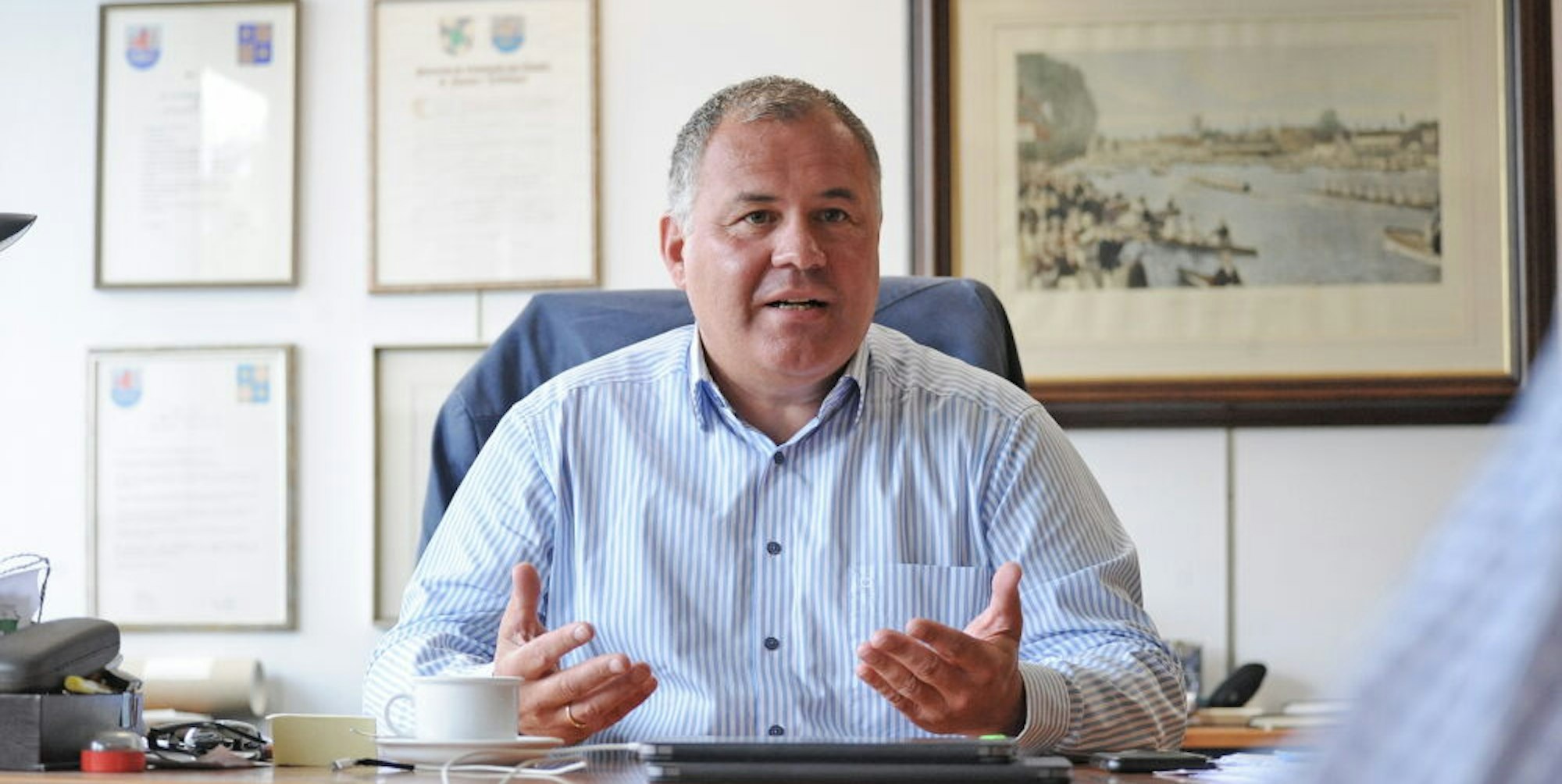 Bürgermeister Frank Steffes (SPD) in seinem Büro im Rathaus.